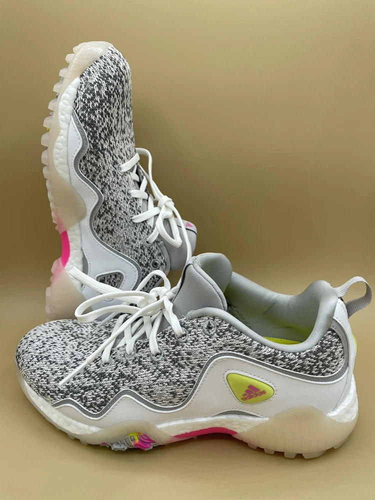 Elevate your golf game with these stylish and comfortable ADIDAS WOMEN'S CODECHAOS 21 golf shoes. The shoes are designed with a low-top shoe shaft style and lace-up closure, ensuring a secure and comfortable fit during your swing. The synthetic upper material is accented with a vibrant Batik pattern, making these shoes a fashionable addition to your activewear or casual outfit. These shoes are perfect for walking and playing golf during the summer, fall, or spring seasons. The outsole material is made of rubber, providing excellent traction on the course. Additionally, the shoes are waterproof, spikeless, and feature a comfortable performance fit, making them an ideal choice for any active or casual occasion.