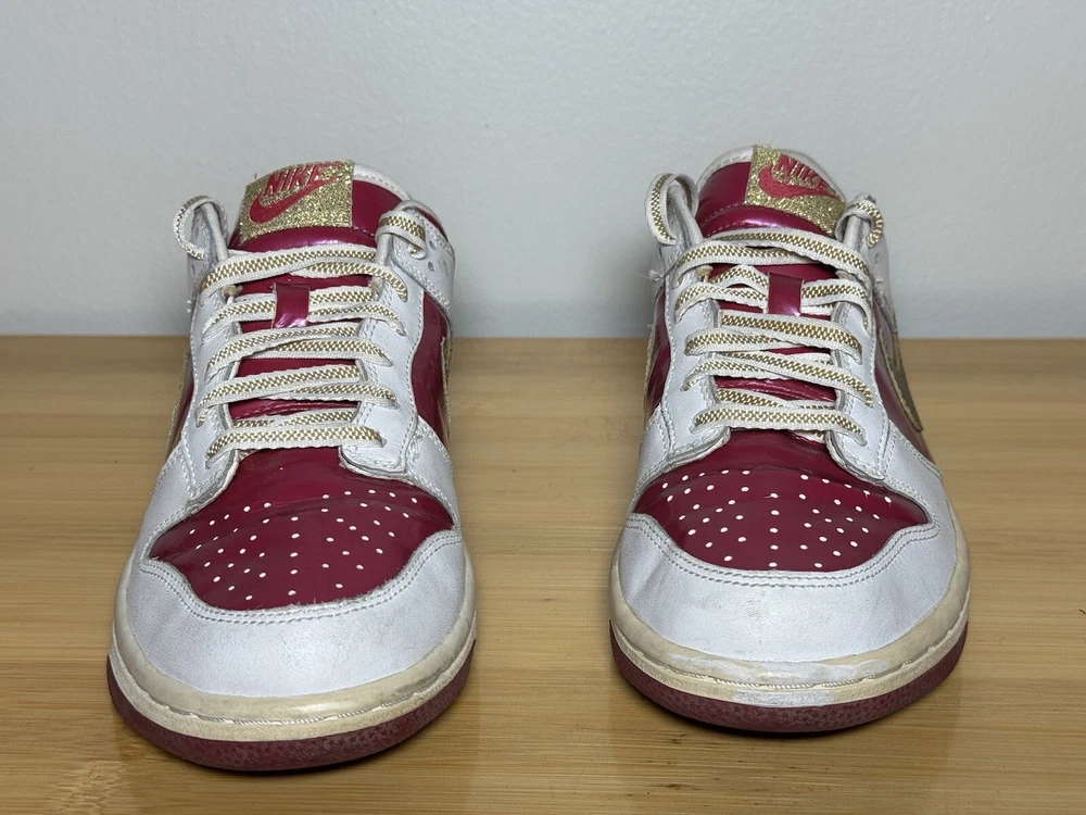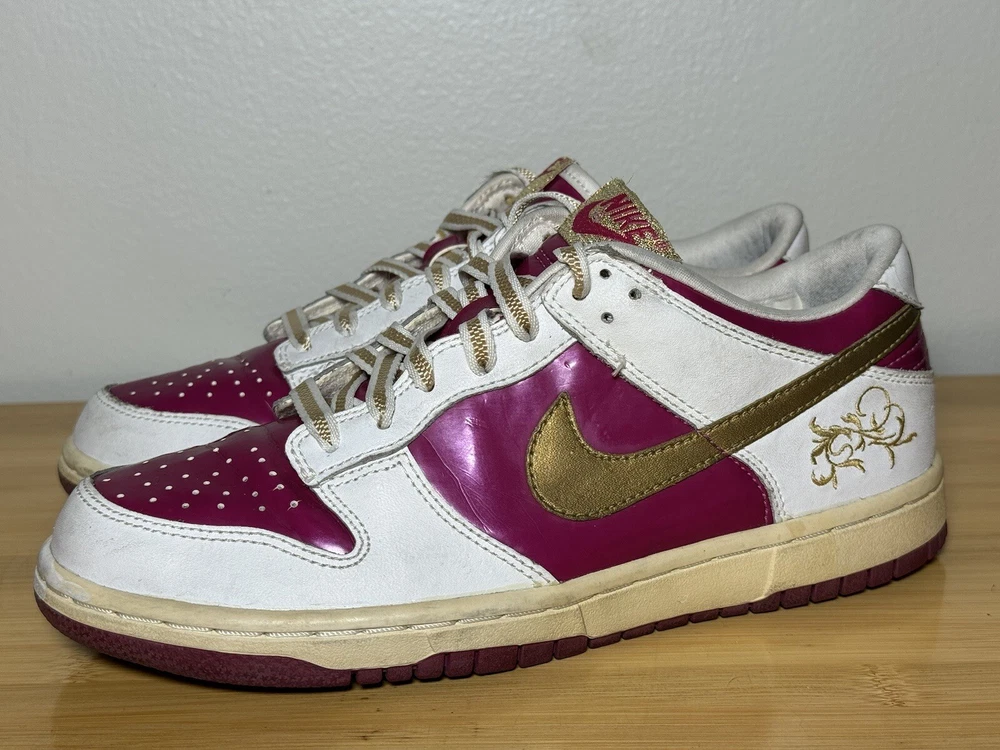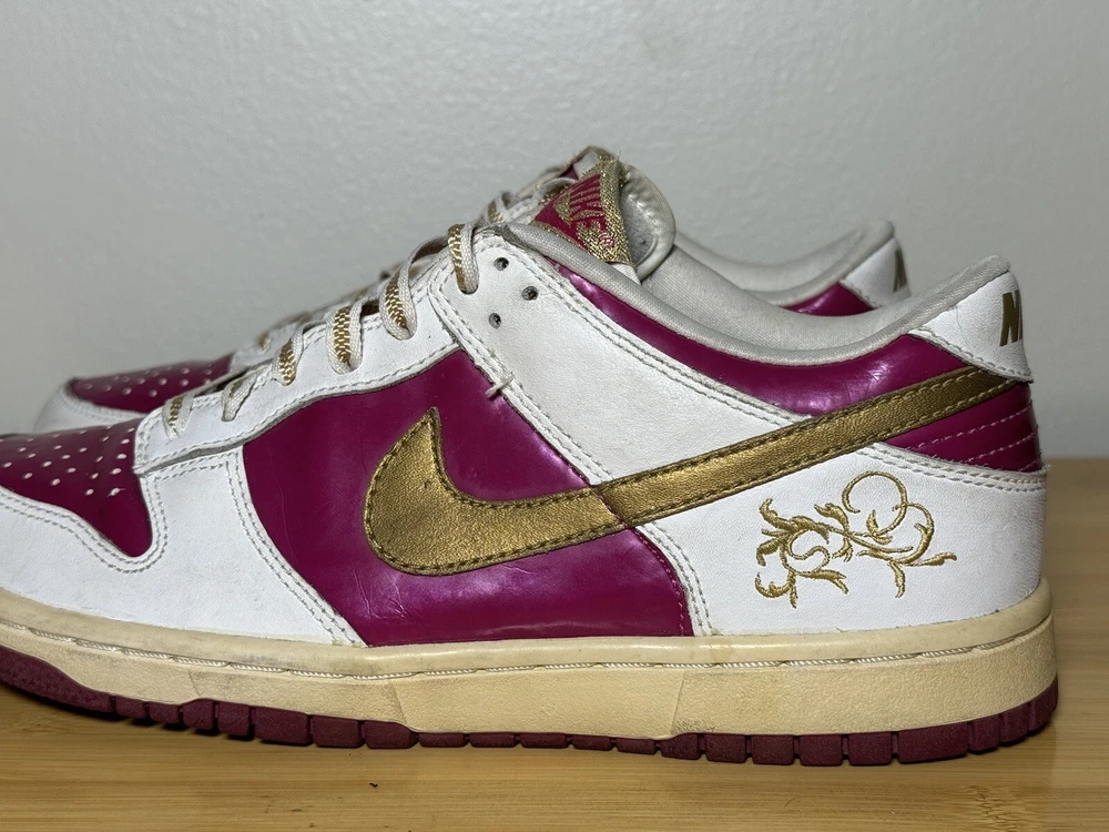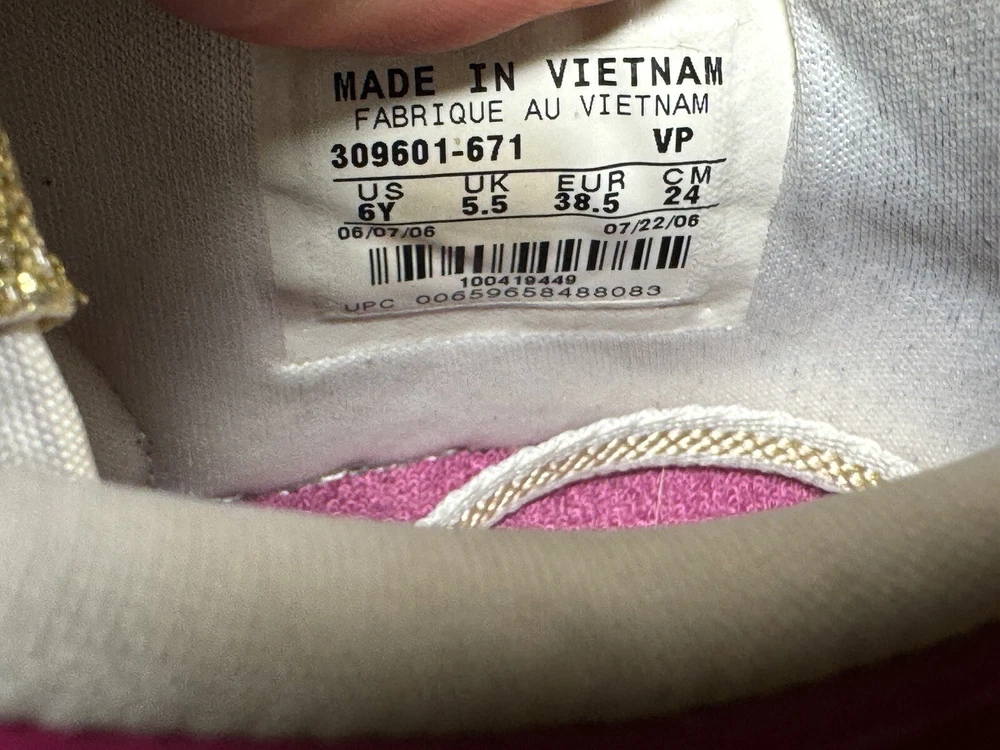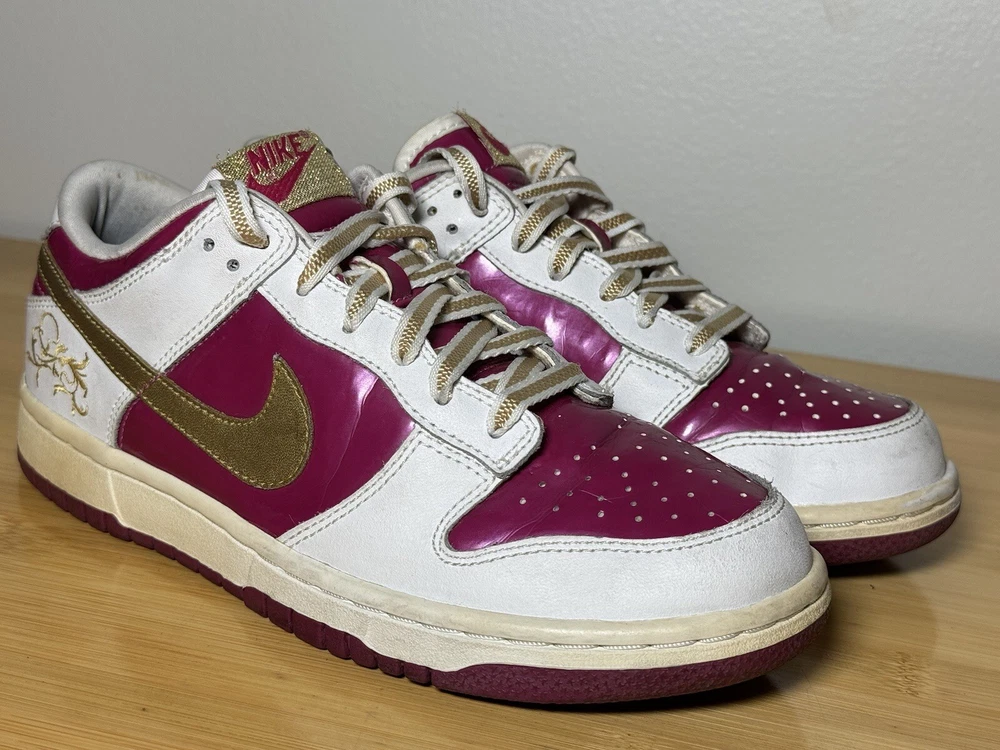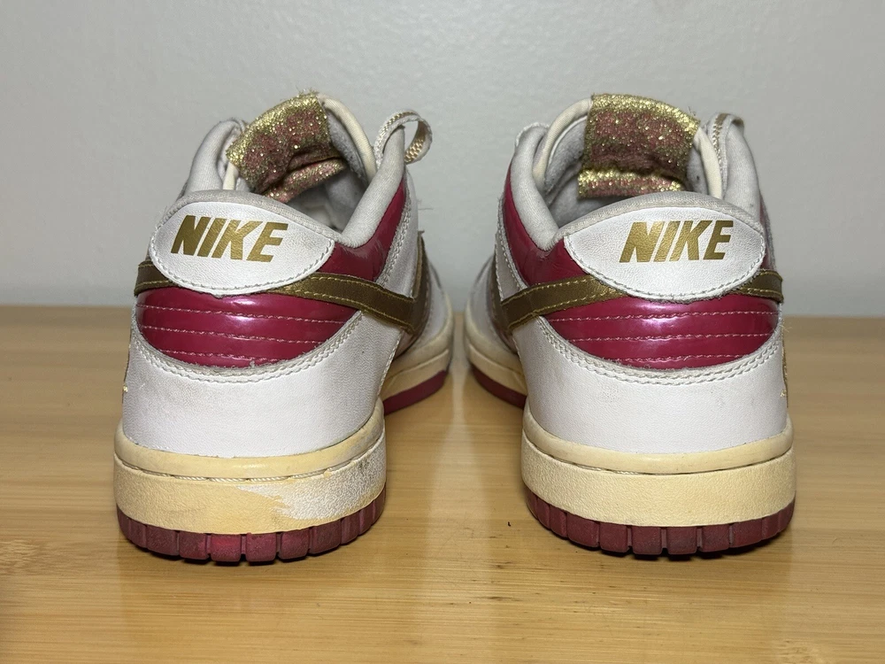 This Nike Dunk Low GS youth shoe is a limited edition piece with a Rave Pink Gold shade that is perfect for any occasion, be it party, activewear, casual, formal, or business. It comes with features that include laces, cushioning, and comfort, making it suitable for walking, school, and basketball. This shoe has a low-top shaft style and a medium shoe width that is perfect for unisex kids with a US shoe size of 6 and a UK shoe size of 5.5. The shoe is made of leather and was manufactured in 2006 in Vietnam. The FTG number is 309601-671, and the product line is Nike Dunk Low. This shoe is not just a rare vintage item; it is also a stylish and comfortable footwear perfect for any occasion.