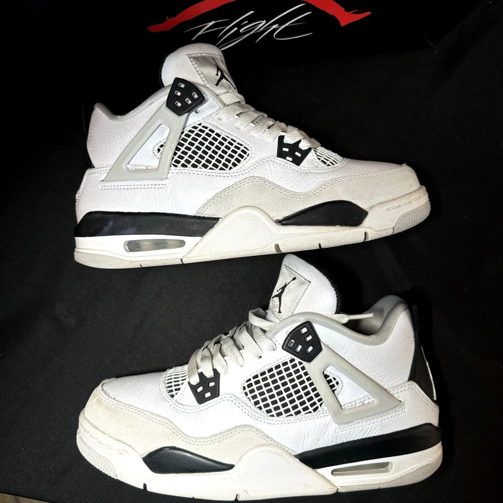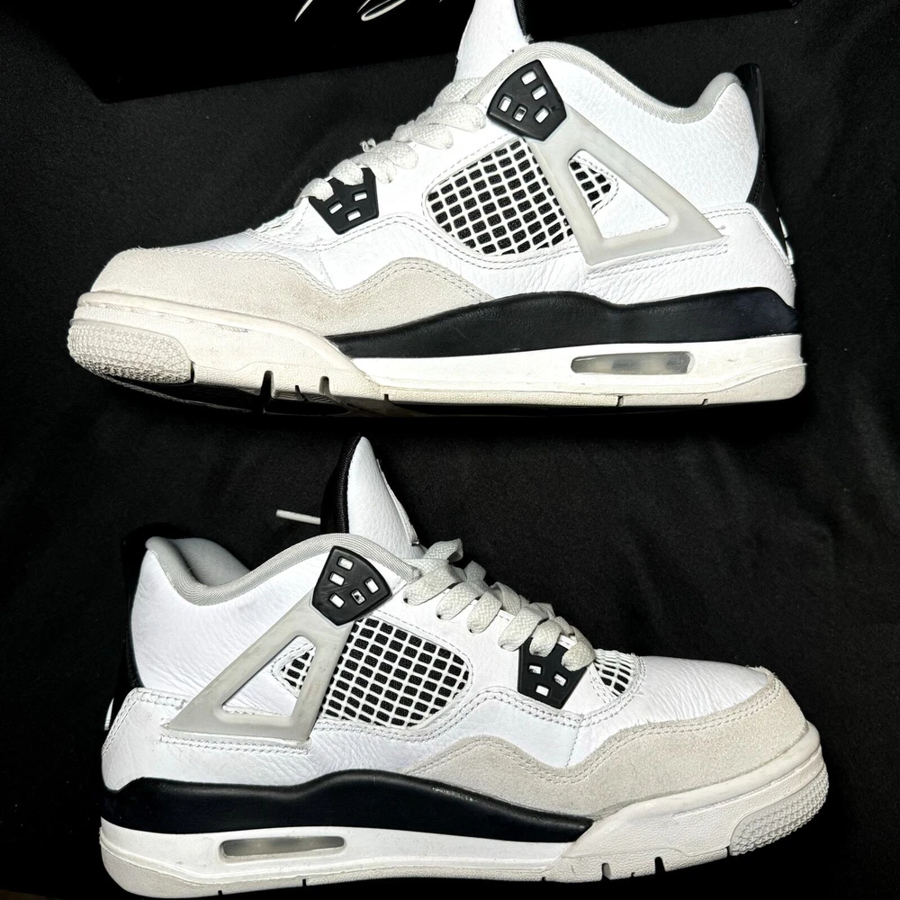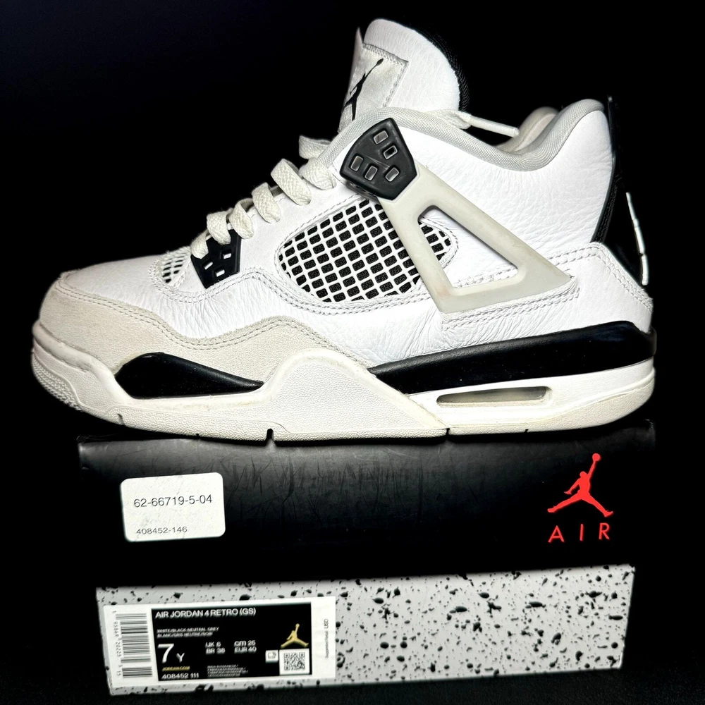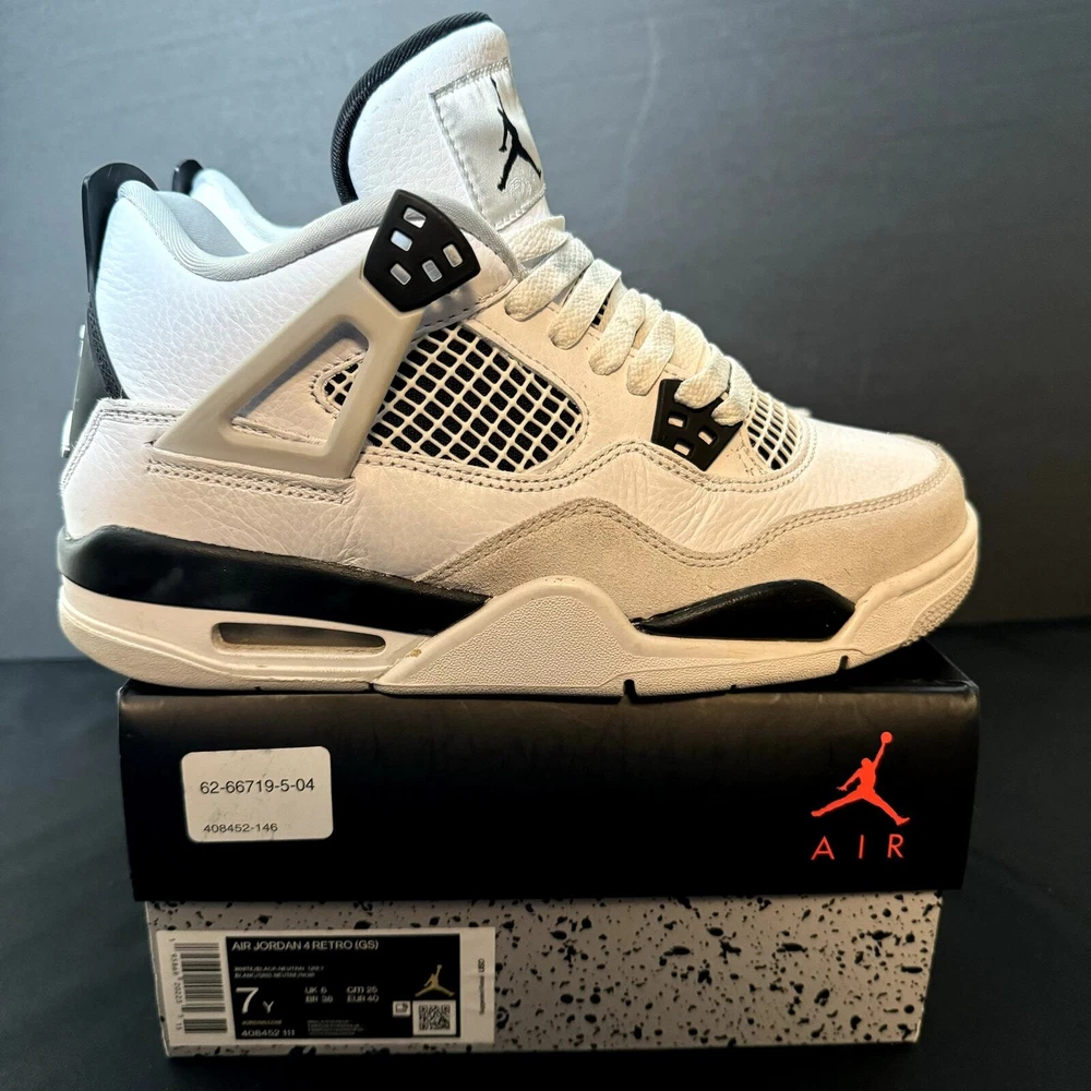 Style: Sneaker Occasion: Activewear Country/Region of Manufacture: Indonesia Insole Material: Fabric Silhouette: Jordan 4 Military Black 2022 gtin13: 00195869202235 UPC: 00195869202235 Lining Material: Fabric Color: White Seller Notes: “100% Authentic Check pictures for condition Message me with any questions” Shoe Shaft Style: Low Top Shoe Width: Standard Upper Material: Leather Customized: No Brand: Jordan Product Line: Air Jordan UK Shoe Size: 6 US Shoe Size: 7 Year Manufactured: 2021 Style Code: 408452 111 Signed: No Vintage: No Features: Adjustable, Comfort Release Year: 2022 Model: Air Jordan 4 EU Shoe Size: 40 Outsole Material: Leather Closure: Lace Up Cleat Type: Rubber Type: Athletic Season: Fall, Spring, Summer Performance/Activity: Lifestyle Character: Michael, Jordan Pattern: Solid Theme: Modern Department: Men