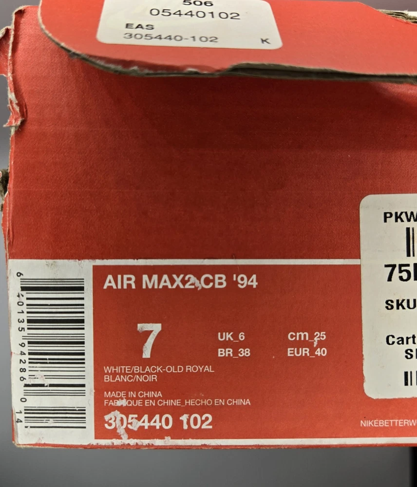 Elevate your game with the classic style and modern comfort of the Nike Air Max 2 CB 94, size 7. Boasting a sleek white and black colorway with the distinctive 'Old Royal' nickname, these sneakers make a statement on and off the court. The leather upper provides durability while the iconic Air Max cushioning ensures a smooth ride. Part of the revered Nike Air Max product line, this pair features the style code 305440-102 and dropped on May 2nd, 2015, offering a timeless look for today's discerning sneaker enthusiast. Whether you're hitting the streets or the hardwood, these athletic shoes are designed to keep up with your dynamic lifestyle.