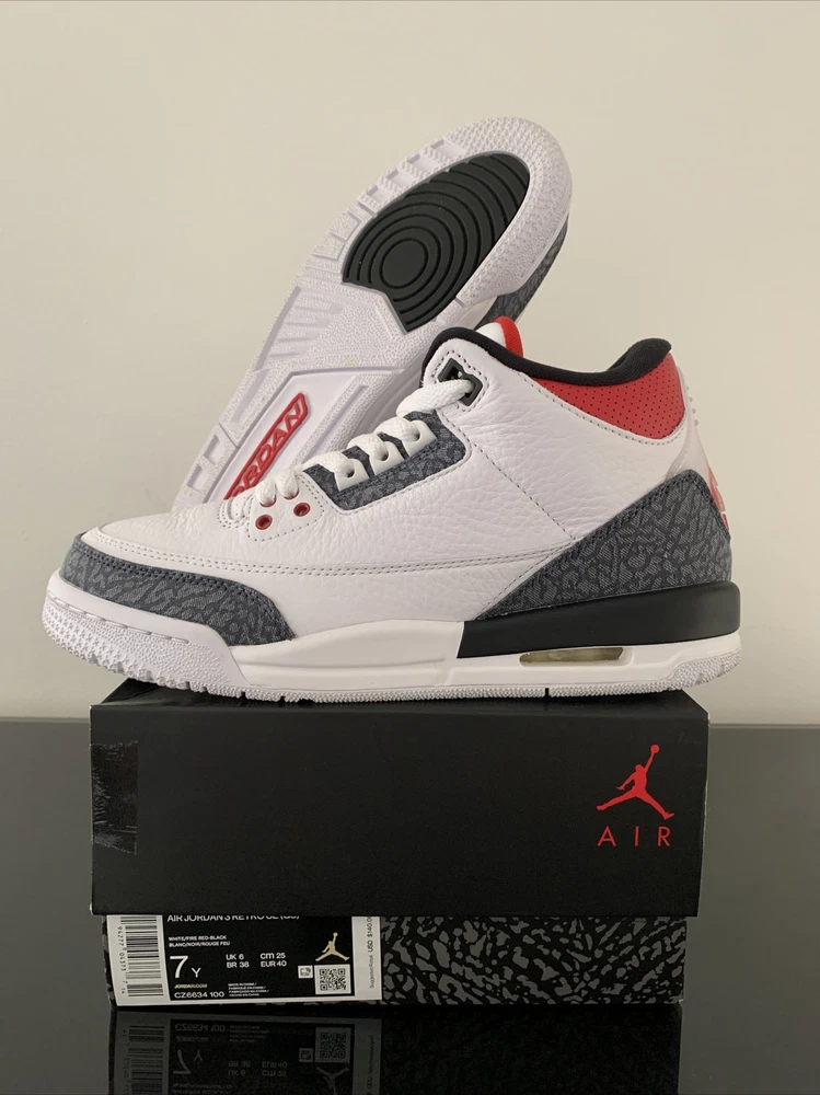 Size 7Y - Nike Air Jordan 3 Retro Denim Fire Red 2020