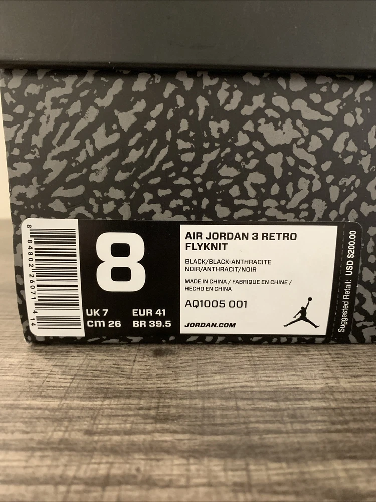 Size 8 - Nike Air Jordan 3 Retro Flyknit Black 2018