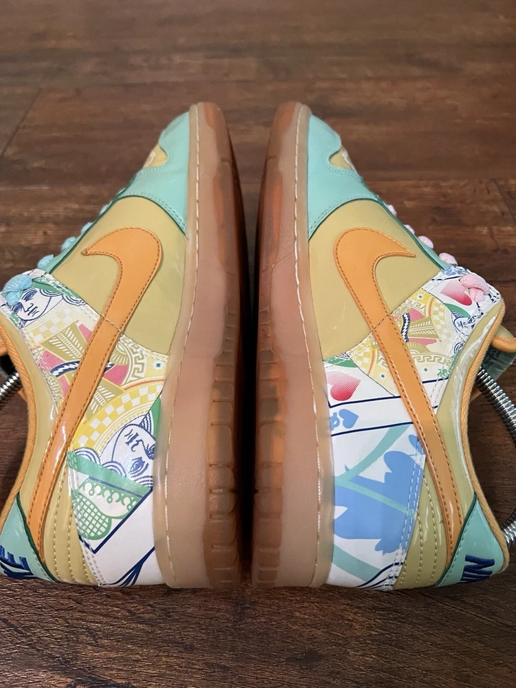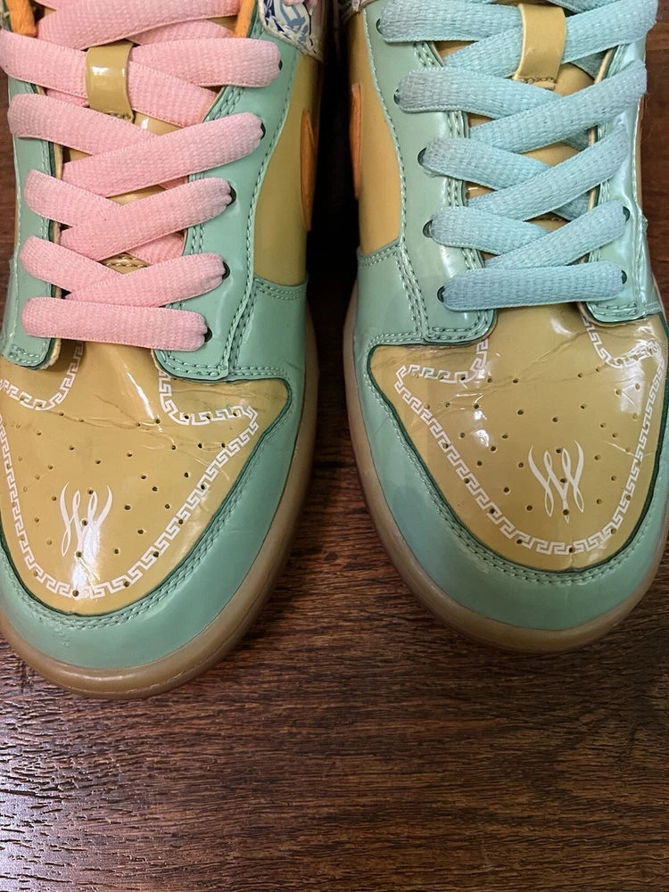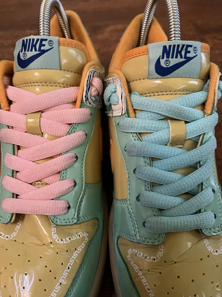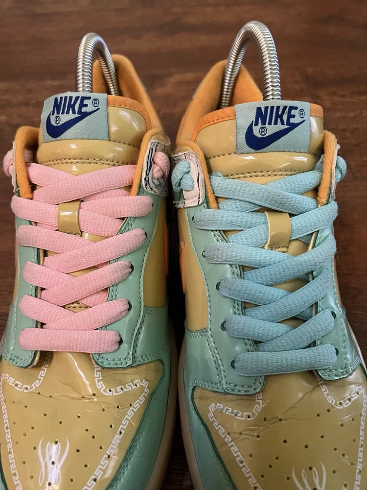 Elevate your sneaker game with these Nike Dunk Premium Low Collection Royale Serena Williams sneakers. Featuring a low top shoe shaft style, these athletic shoes are perfect for any woman who wants to look stylish while staying comfortable. The green color and royal theme will make you stand out from the crowd. These sneakers are part of the Nike Dunk product line and have a style code of 313600-371. They are available in US shoe size 8.5 and are perfect for any woman who wants to add a touch of elegance to her wardrobe. Whether you're going to the gym or just running errands, these Nike Dunk sneakers are the perfect choice.