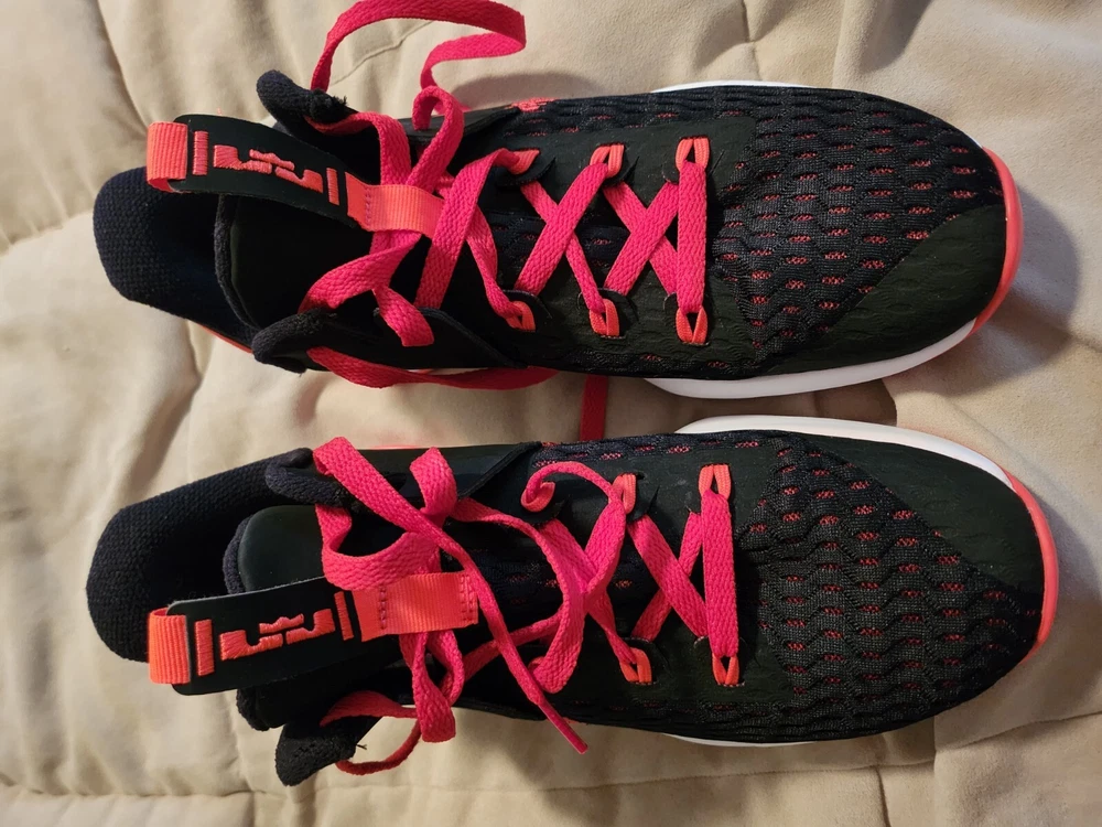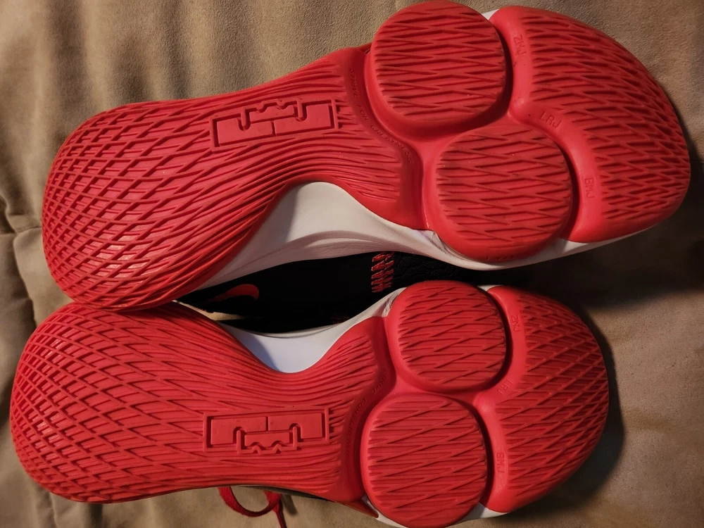 Elevate your sneaker game with these Nike LeBron Witness 5 Bred sneakers. These shoes are perfect for any athletic occasion with its comfortable mesh upper material and breathable design. The black and university red colorway, along with white and bright crimson accents, will make a bold statement wherever you go. the shoes do show a little wear on the soles, but not alot. they have alot of tread left and vibrant color. there are no tears or defects. These sneakers are part of the Nike LeBron product line and feature the iconic Bred nickname. The style code is CQ9380-005, and it was released on January 14, 2021. Whether you're hitting the gym or just running errands, these Nike LeBron Witness 5 Bred sneakers are a must-have for any sneakerhead.