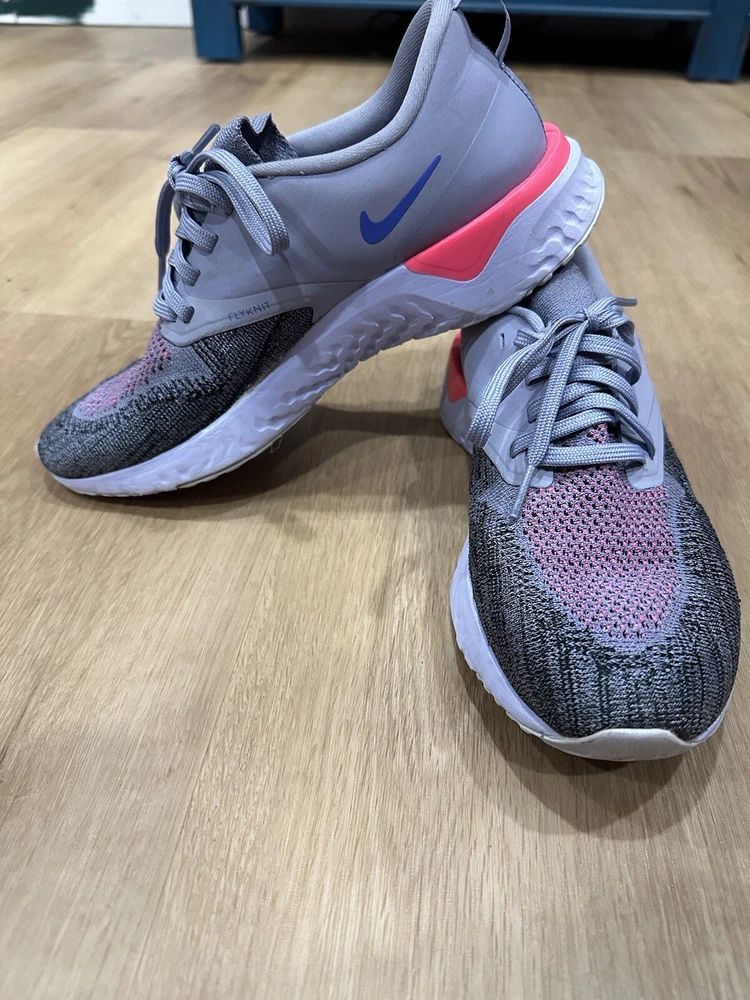 Elevate your activewear game with these Nike Odyssey React Flyknit 2 sneakers in a beautiful indigo haze and black colorway. Designed for women, these sneakers feature a lace-up closure and a low-top shoe shaft style. The upper material is made of breathable mesh and adorned with Nike's signature logo accents. These sneakers are perfect for gym and training, cross-training, and running and jogging. They were manufactured in Vietnam in 2018 and are part of the Nike Odyssey React product line. The cushioned, comfortable, and breathable features make them ideal for any season, be it winter, summer, fall, or spring. Get yourself a pair of these colorful and stylish sneakers today!