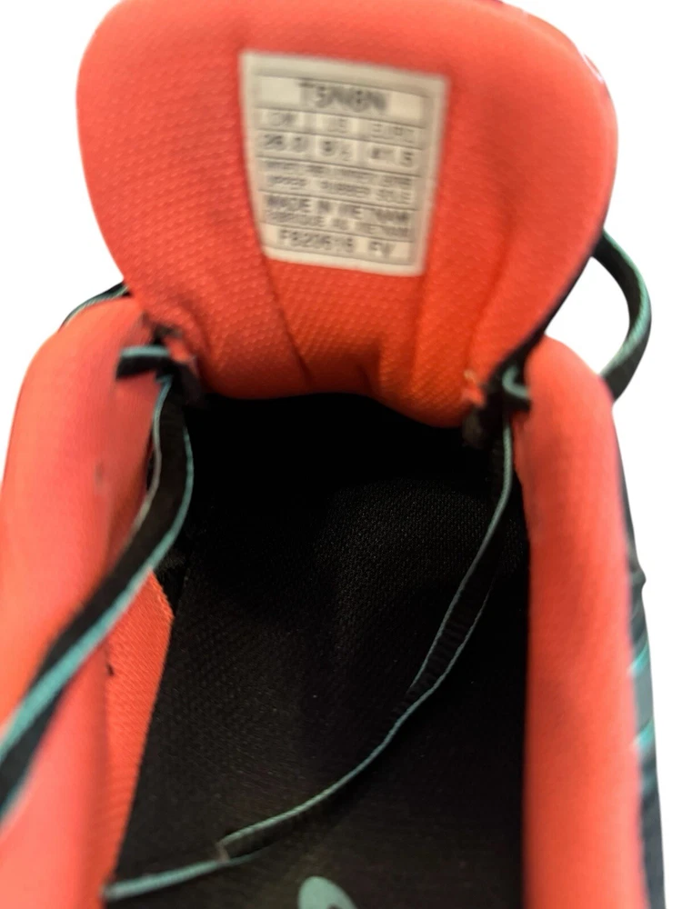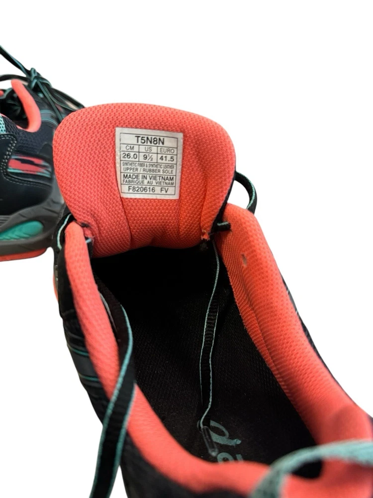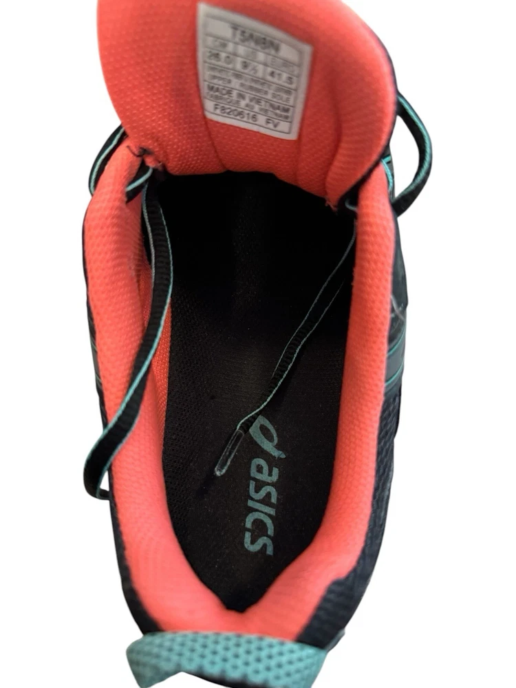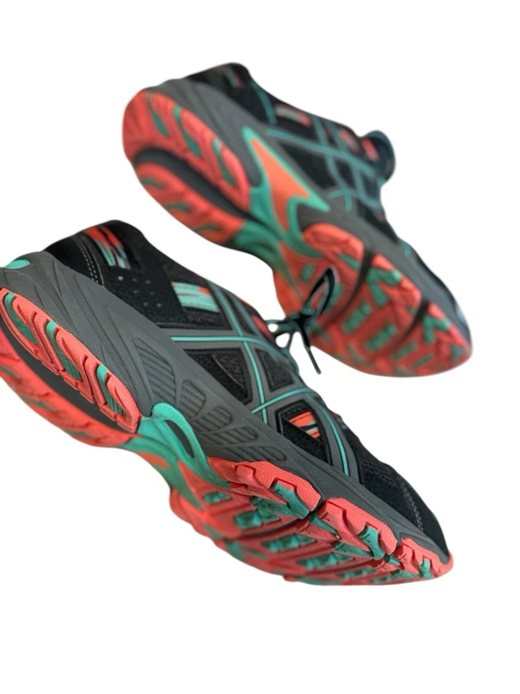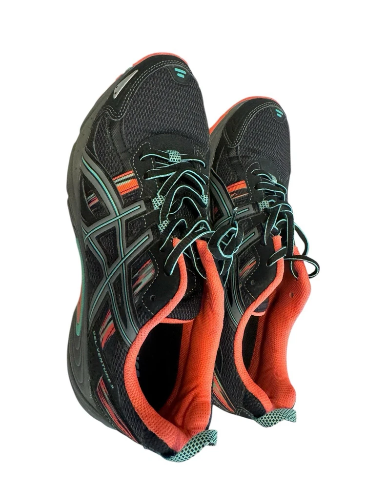 Elevate your athletic style with these ASICS Gel Venture 8 sneakers in a stunning black and coral blue colorway. Designed for women, these sneakers feature a mesh upper material and a comfortable W shoe width. The ASICS Gel Venture model is known for its superior support and cushioning, making them perfect for any active lifestyle. These sneakers are part of the ASICS Gel Venture product line and feature a style code of 1012 A708-008. They are available in US shoe size 9.5 and are ideal for any woman looking for a stylish and supportive athletic shoe. Don't miss out on the chance to add these ASICS Gel Venture sneakers to your collection!
