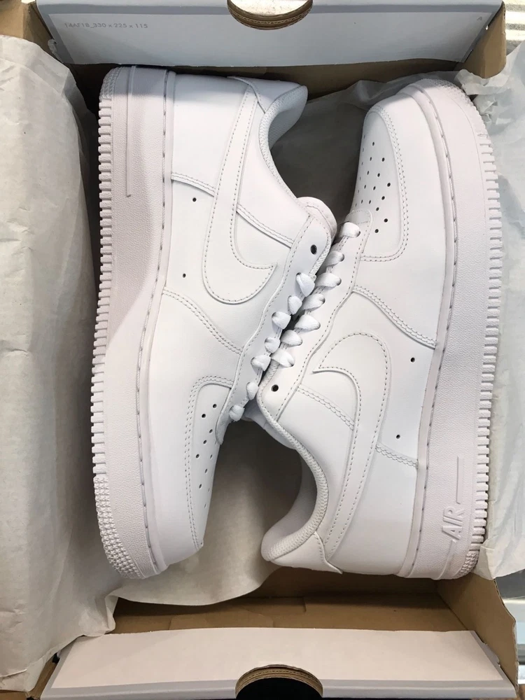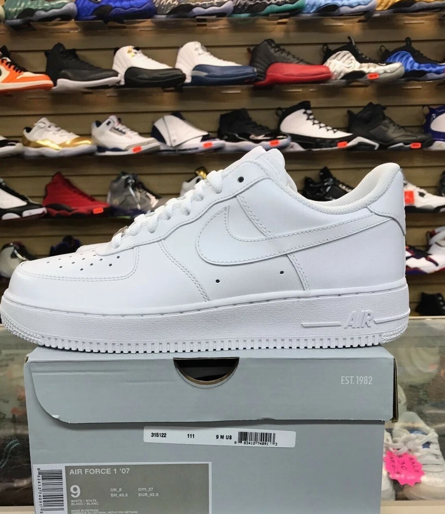 Elevate your sneaker game with these Nike Air Force 1 Low '07 in white. With a low top shoe shaft style and made with leather, these sneakers are perfect for any athletic activity, including boxing. The 2018 release year and style code 315122-111 ensure that you're wearing a fresh pair of shoes that will make a statement. These Nike Air Force 1 Low sneakers are a must-have for any sneakerhead. The white color and athletic style make them versatile for any occasion. The shoes come in a men's size 9 and are part of the Nike Air Force product line. Don't miss out on adding these sneakers to your collection.