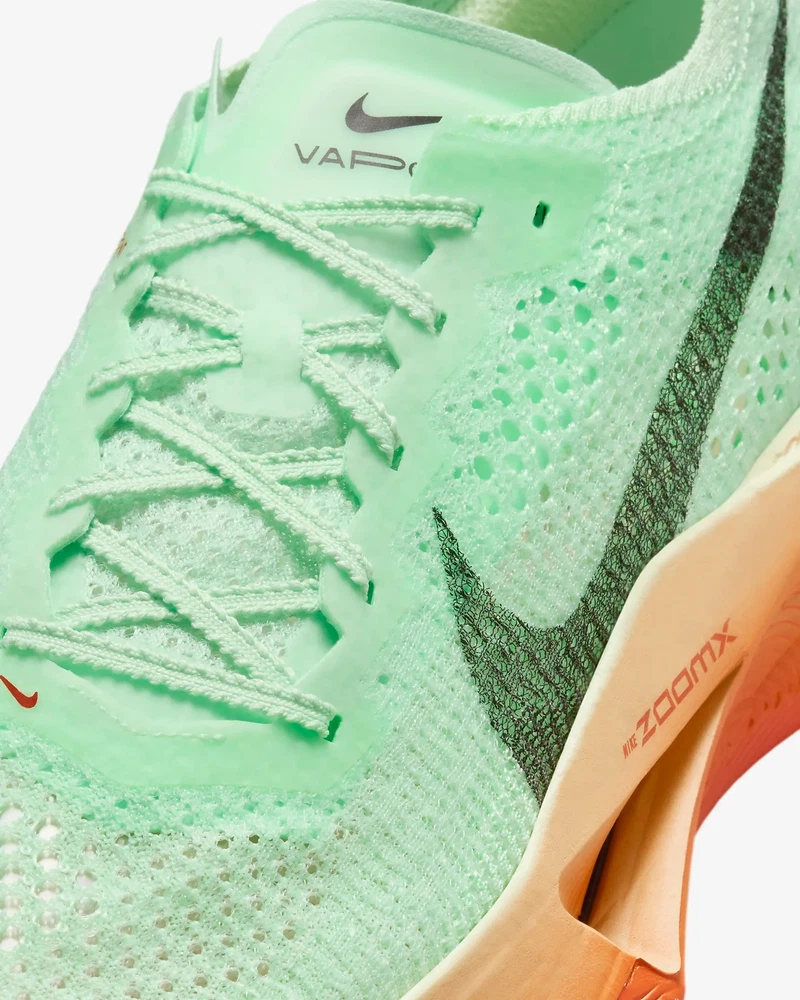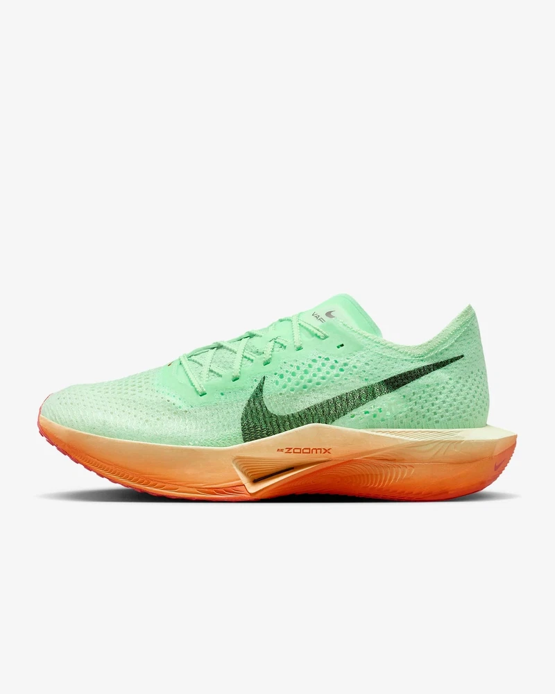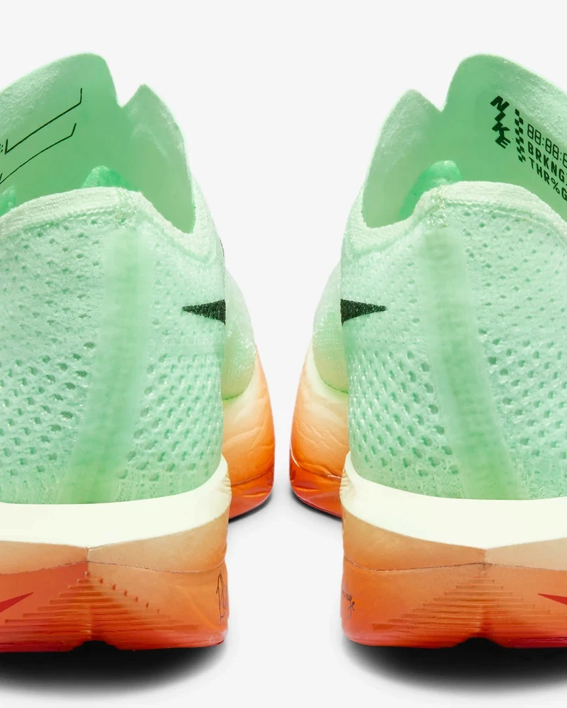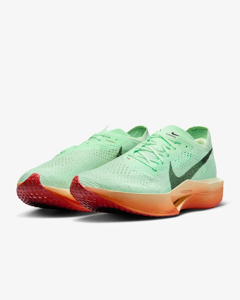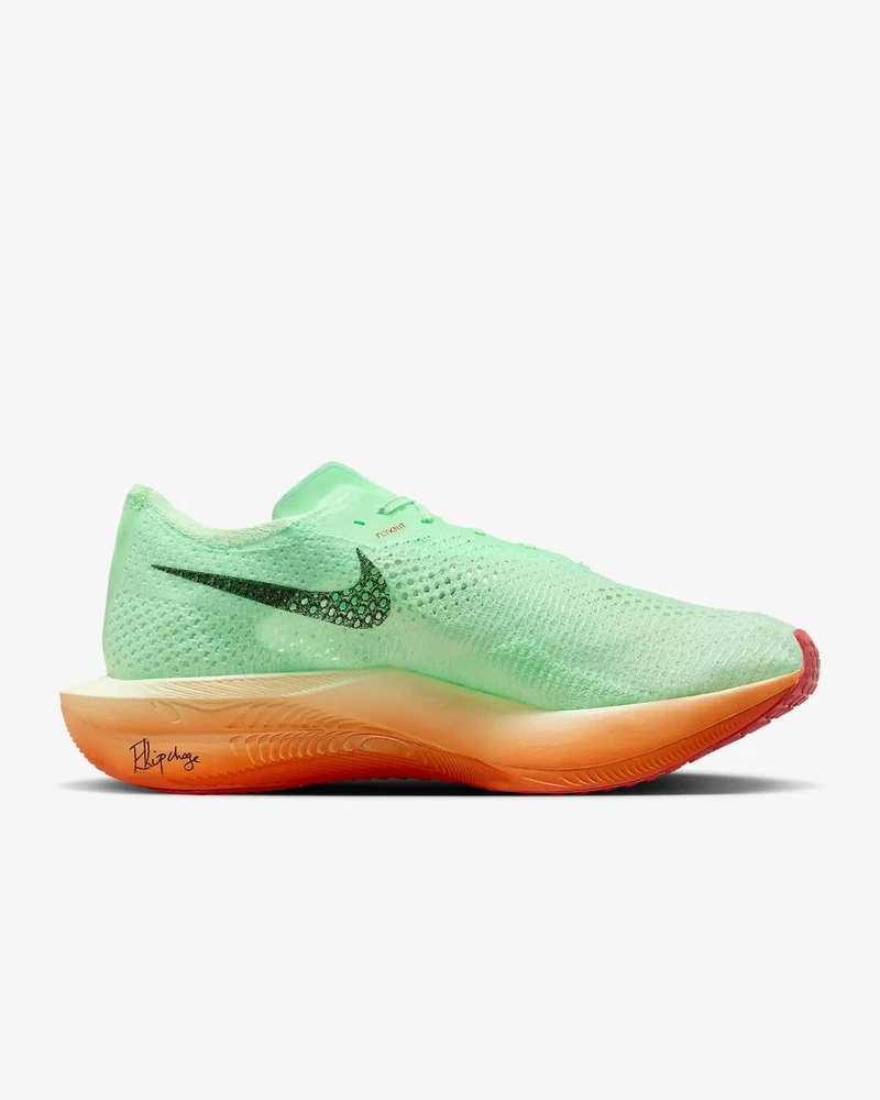 Fine-tuned for marathon speed, the Alphafly 3 helps push you beyond what you thought possible. Three innovative technologies power your run: A double dose of Air Zoom units helps launch you into your next step; a full-length carbon fiber plate helps propel you forward with ease; and a heel-to-toe ZoomX foam midsole helps keep you fresh from start to 26.2. Time to leave your old personal records in the dust. Keep Growing Whenever someone trains with Eliud Kipchoge, they're asked to plant a tree at his base camp to signify their growth. The sockliner graphics mimic that growth with branches moving forward towards the front of the shoe. The red clay color fade nods to the Kenyan dirt that stains the shoes when training. The font is a play on African trees that have fractal-like patterns on the surfaces. Energy Return for Your Marathon Two forefoot Air Zoom units combine with ZoomX foam to store and return the energy back to you, powering every step. Propulsive Feeling A full-length carbon fiber plate delivers a propulsive sensation that helps you smoothly transition through every stride and tackle turns with confidence. Cushioned Ride Fully connected ZoomX foam creates an ultralight and cushioned feel, helping you stay fresh and comfortable from mile 1 to 26.2. What's New About the Alphafly 3? The Alphafly 3 is our lightest Alphafly ever, featuring a slightly wider carbon fiber plate for increased stability, a fully connected ZoomX foam midsole for smoother transitions and an all-new Atomknit upper designed for improved multidirectional containment and breathability. More Benefits Notched laces offer a secure but soft lace-up. Product Details Weight: Approx. 218 g/7.7 oz (Men's US 10) Heel-to-toe drop: 8 mm