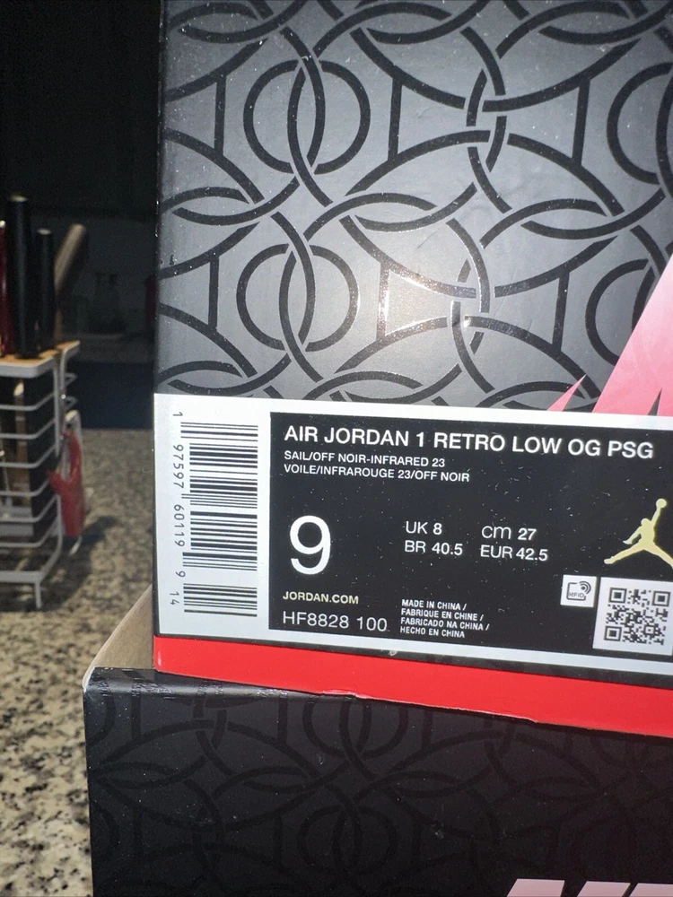 Step up your sneaker game with the Size 8.5 Paris Saint-Germain x Air Jordan 1 Retro OG Low Sail Pink Oxford. This stylish and comfortable sneaker features a Low Top Shoe Shaft Style and a Jordan 1 Retro Low Silhouette, perfect for any athletic occasion. The sneaker is made with high-quality Leather Upper Material and boasts a striking Red Color that is sure to turn heads. The Air Jordan 1 model has been a fan favorite since its introduction in 1992, and this collaboration with Paris Saint-Germain adds a unique touch to the iconic design. With a Style Code of HF8828-100 and a US Shoe Size of 8.5, this sneaker is perfect for any man who wants to make a statement with their footwear. Whether you're hitting the basketball court or just running errands around town, the Air Jordan 1 Retro OG Low Sail Pink Oxford is a must-have addition to your sneaker collection.