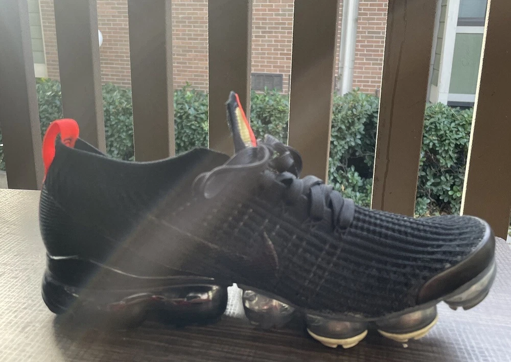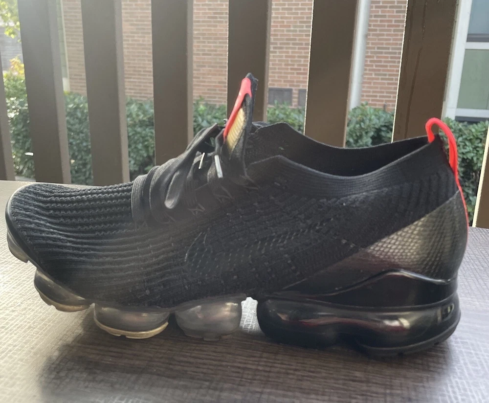 Elevate your shoe game with these stylish Nike Air VaporMax 3.0 sneakers. Featuring a crimson snakeskin upper and gold accents, these shoes are perfect for any sports occasion from running to cross-training. The lace-up closure ensures a secure fit while the adjustable, breathable design provides comfort and cushioning. These sneakers are part of the Nike Air VaporMax product line and are a size 9.5 in both US and UK shoe sizes. The synthetic outsole and foam insole make them suitable for winter, summer, fall, and spring. The animal print pattern adds a touch of style to these athletic shoes, perfect for men who want to make a statement.