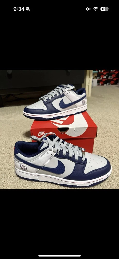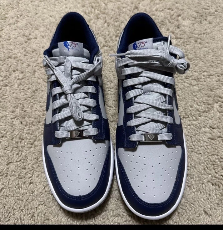 This Nike Dunk sneaker is a must-have for any basketball fan. Designed in collaboration with the NBA and released for the 75th Anniversary, this pair features the New York Nets team colors and logo. The low top style and athletic type make it perfect for both on and off the court. The sneaker is made of high-quality leather and has a comfortable fit, with a shoe width of D. Its release year is 2021, and it belongs to the Nike Dunk product line. This Nike Dunk x NBA EMB Low sneaker is a great addition to any sneaker collection and a perfect gift for any basketball fan.