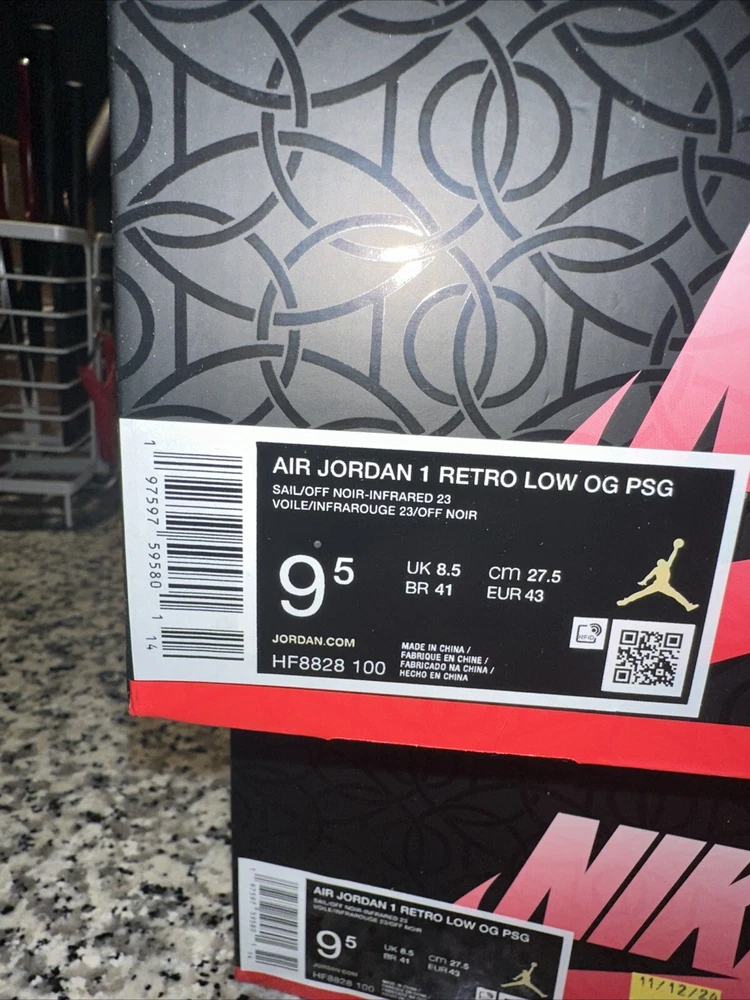 Step up your sneaker game with the Size 8.5 Paris Saint-Germain x Air Jordan 1 Retro OG Low Sail Pink Oxford. This stylish and comfortable sneaker features a Low Top Shoe Shaft Style and a Jordan 1 Retro Low Silhouette, perfect for any athletic occasion. The sneaker is made with high-quality Leather Upper Material and boasts a striking Red Color that is sure to turn heads. The Air Jordan 1 model has been a fan favorite since its introduction in 1992, and this collaboration with Paris Saint-Germain adds a unique touch to the iconic design. With a Style Code of HF8828-100 and a US Shoe Size of 8.5, this sneaker is perfect for any man who wants to make a statement with their footwear. Whether you're hitting the basketball court or just running errands around town, the Air Jordan 1 Retro OG Low Sail Pink Oxford is a must-have addition to your sneaker collection.