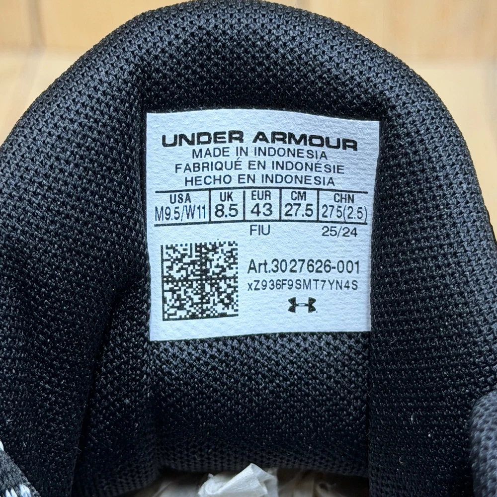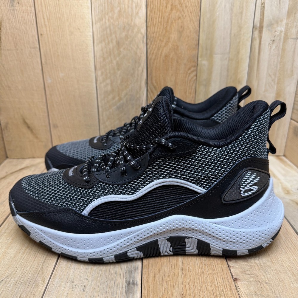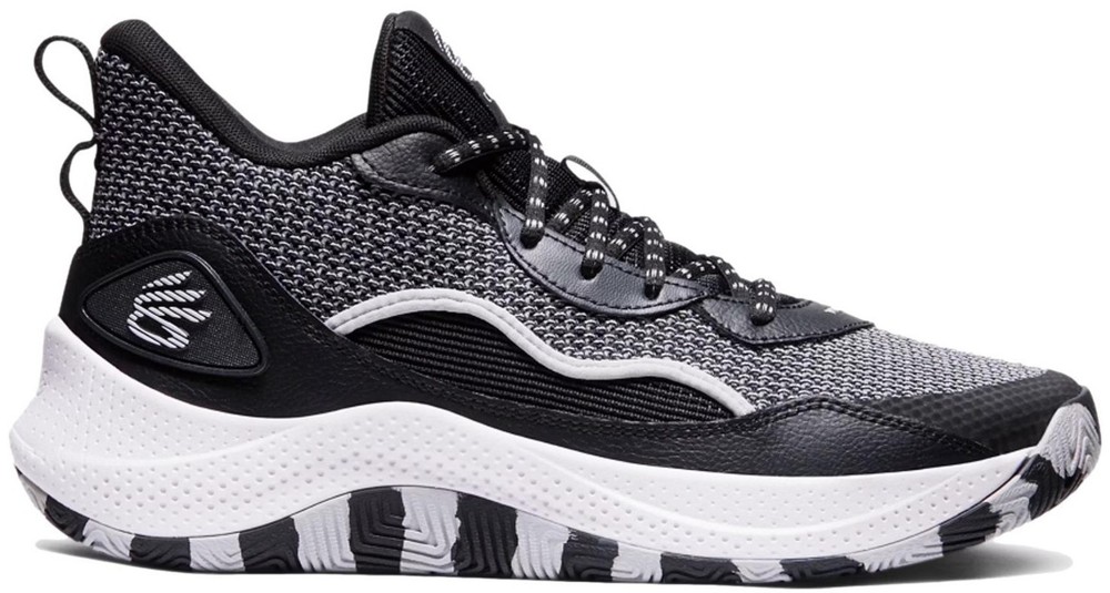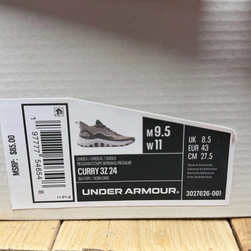 Under Armour Curry 3Z24 basketball shoes offer a performance-driven design with a sleek black and grey colorway. These mid-top sneakers feature a breathable mesh upper paired with durable synthetic overlays for support during quick cuts on the court. The Micro G foam midsole provides responsive cushioning, while the unique zebra-patterned rubber outsole ensures multi-directional traction. Designed with a secure lace-up closure and heel pull tabs, these sneakers combine Stephen Curry's signature style with reliable athletic functionality. Brand: Under Armour Model: Curry 3Z24 Style Code: 3027626-001 Color: Black/Grey/White Closure: Lace Up Upper Material: Mesh/Synthetic Midsole: Micro G Foam Outsole: Rubber Pattern: Zebra/Wavy Toe Shape: Round Toe Shoe Shaft Style: Mid Top Performance/Activity: Basketball Cushioning Level: Moderate Keywords: Stephen Curry, Hoops, Court, Athletic, Sportswear, Monochrome, Performance, Breathable, Lightweight, Gym, Training, Streetwear, Zebra Print If you have any additional questions, please don't hesitate to contact me direclty.