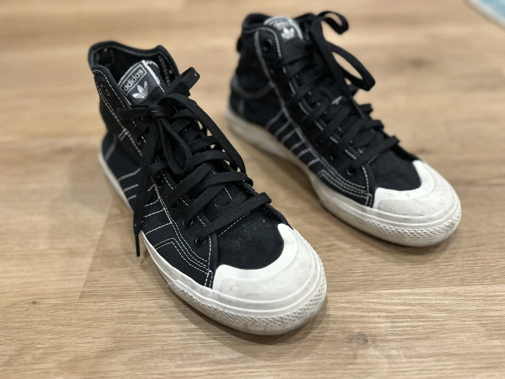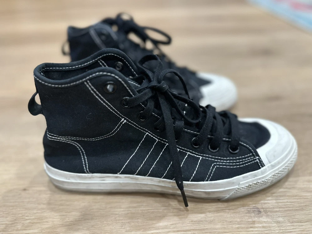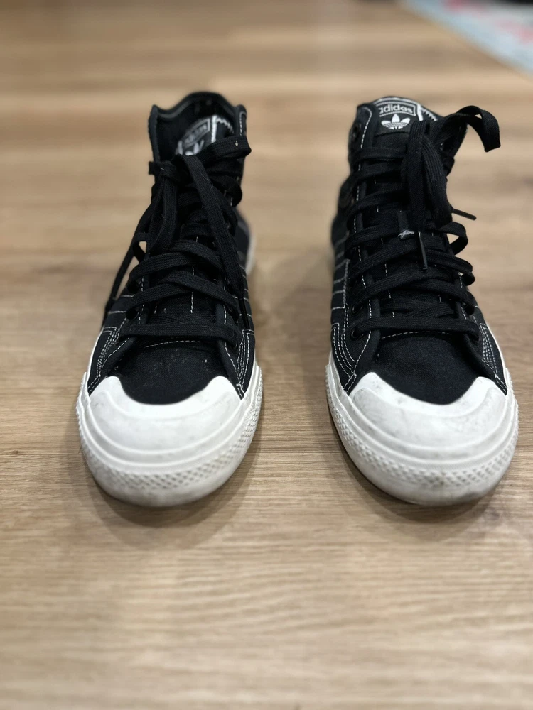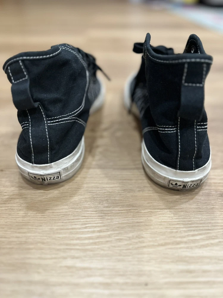 Crafted for both style and comfort, the adidas Nizza RF Hi Core Black offers a timeless high top silhouette that complements any casual or activewear ensemble. The durable canvas upper, in a versatile black hue, pairs effortlessly with a range of outfits, making it a staple for any wardrobe. Equipped with a cushioned insole and lightweight design, these sneakers ensure a comfortable experience through every step. With their solid pattern and classic '80s-inspired aesthetics, the Nizza RF Hi sneakers are ideal for those who appreciate retro style without compromising on modern comfort. The robust rubber outsole provides excellent traction for activities such as gym training, walking, or even casual strolls on the beach. Whether you're hitting the schoolyard or the city streets, these athletic shoes are designed to keep up with your lifestyle all year round.