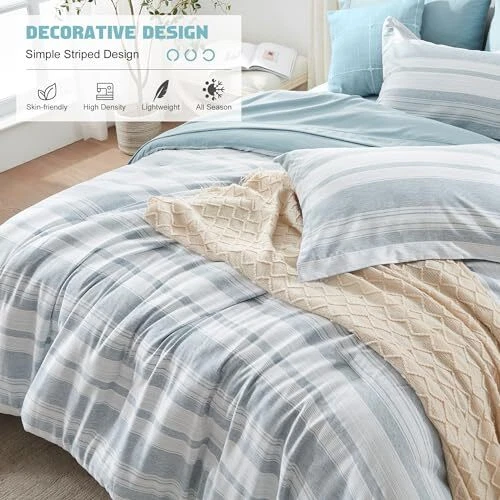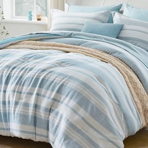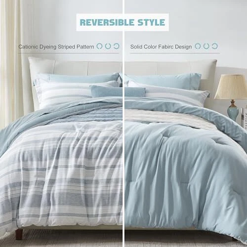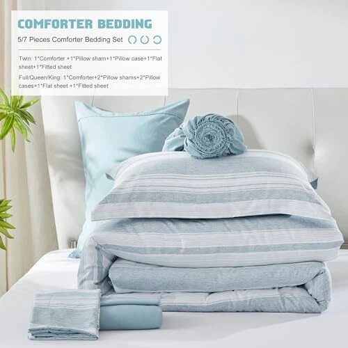 Size Comforter Set, 7 Pieces Bed in a Bag Striped, Lightweight Full Aqua Green