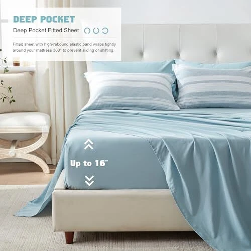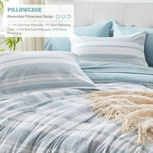 Return Policy Fast Delivery Trusted seller Full Size Comforter Set, 7 Pieces Bed in a Bag Aqua Green Striped, Lightweight Cationic Dyeing Bedding Sets for All Seasons with Comforter, Flat Sheet, Fitted Sheet, Pillow Shams, Pillowcases Product Description Cation dyeing fabric: 's quilts are dyed with cationic two-color dyeing process, which makes the quilts' colors natural, long-lasting and even, and not easy to fade. The fabric of the quilt achieves the texture of imitation linen. Comfortable Fabric: Oeko-Tex standard, high-density cationic fabric with horizontal and vertical weaving process, more comfortable and breathable than ordinary fabrics. Exquisite Craftsmanship: The stitching process enhances the firmness between the comforter fillings to avoid shifting and lumping. Three-dimensional spiral distribution enhances the fluffiness and softness of the quilt cover, keeping it light and warm. Simple And Stylish: The comforter set features a striped patchwork design on the front and a simple solid color on the back, conveying modern minimalism and comfort and casualism. Add simple comfort and vibrant fashion to your bedroom. Package: bed in a bag, you will receive 1* mattress (104“ x 90”), 1* pillowcase (20“ x 26” x 2“), 1* bed sheet (78” x 80 “ x 16“), 1* bed sheet (108” x 102“), 1* pillowcase (20” x 30“ x 4”). Care Instructions: Bagged in vacuum-sealed packages, for first use air dry the quilt for 24-48 hours, place the quilt in the sun and pat gently to restore fluff. Please machine wash gently in cold water and then sun dry or tumble dry on low temperature. Shipping Returns Payment Shipping Shipping is FREE to all addresses other than APO/PO boxes in the lower 48 states. All our stock ships from US-based warehouses. Shipped via USPS or UPS (depending on location and package weight) Unless stated otherwise, all orders will ship within 24-72 hours of your payment being processed. Check our feedback to see the great reviews of FAST shipping we offer. Returns Seller does not accept returns Payment We currently accept payment via eBay managed payments only. Once payment is cleared, we will dispatch your shipment within 1-3 business days. Please refer to the "Shipping" tab for more information regarding shipping speed to your destination.