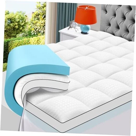 Return Policy Fast Delivery Trusted seller Queen Size Dual Layer 4 Inch Memory Foam Mattress Topper, 2 Inch Gel Memory Foam and 2 Inch Cooling Pillow Top Mattress Pad Cover for Back Pain, Medium Support Product Description 2 In 1 ADJUSTABLE DUAL LAYER DESIGN - This plush dual layer mattress topper features a 2-inch cooling gel memory foam and a 2-inch quilted breathable pillow top mattress topper with snow down alternative overfilling. When combined, it can become a 4-inch thick mattress topper, which not only has strong support, but also provides a cloud-like comfortable experience LUXURY EXTRA THICK MATTRESS TOPPER - It uses 3D&7D fiber made Three Dimensional Structure that makes the air circulate, gives superior comfort and cooling without extra heat and sweat caused by memory foam or traditional mattresses. Square jacquard surface with double border pillow top construction can make your bedroom no longer monotonous IMPROVE SLEEP & RELIEVE PAIN - The 4-inch buffer space gives you ergonomic support from head to foot. Fit the body curve, so that your shoulder, neck, back and spine can be in the most relaxed state, so as to relieve pain. The medium firm memory foam and the pillow top mattress pad cover give you the best sleep experience HIGH QUALITY & EASY CARE - 400TC combed fiber made mattress topper is durable, no risk being ripped even with frequently washing. Machine wash separately in cold water. Tumble dry on low heat or line dry. Wash them regularly to keep your mattress clean and free of stains keeps it smelling fresh and helps you to keep you healthier PACKAGE & SERVICE - Due to vacuum packaging, it may look thinner after opening the package, please take out the foam memory and the mattress pad, lay them flat in a well-ventilated area for 48-72h to remove the slight smell of the foam memory and restore the fluffiness of the mattress pad. We will provide a 10-year warranty service. You can contact us directly to get a satisfactory solution Shipping Returns Payment Shipping Shipping is FREE to all addresses other than APO/PO boxes in the lower 48 states. All our stock ships from US-based warehouses. Shipped via USPS or UPS (depending on location and package weight) Unless stated otherwise, all orders will ship within 24-72 hours of your payment being processed. Check our feedback to see the great reviews of FAST shipping we offer. Returns Seller does not accept returns Payment We currently accept payment via eBay managed payments only. Once payment is cleared, we will dispatch your shipment within 1-3 business days. Please refer to the "Shipping" tab for more information regarding shipping speed to your destination.