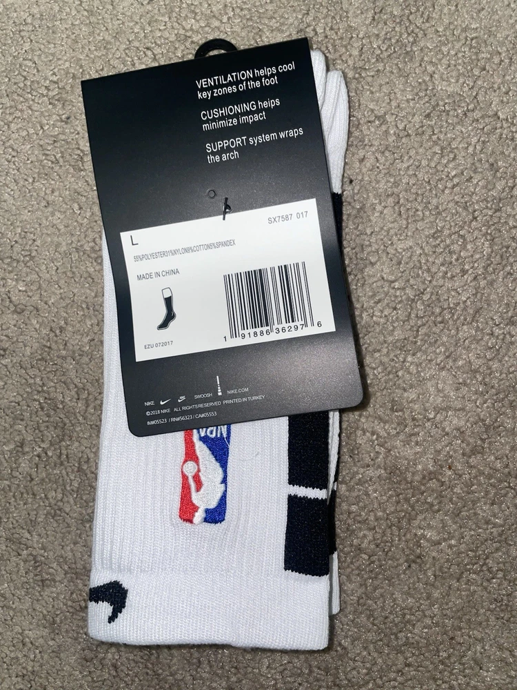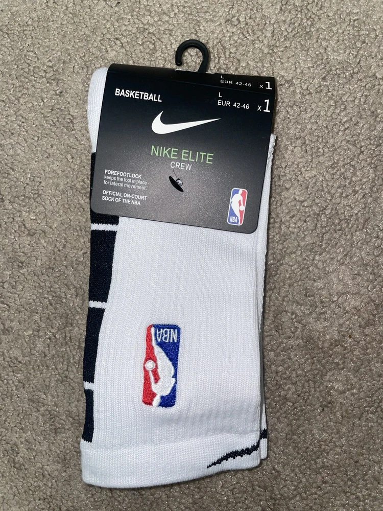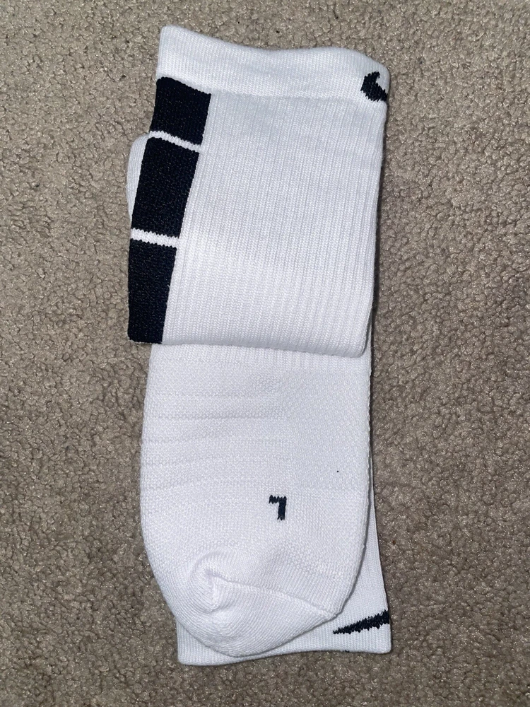 Size Large or 8-12 Mens-Nike Elite Dri-Fit NBA Basketball Crew Socks White/black