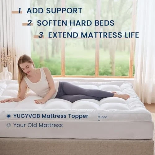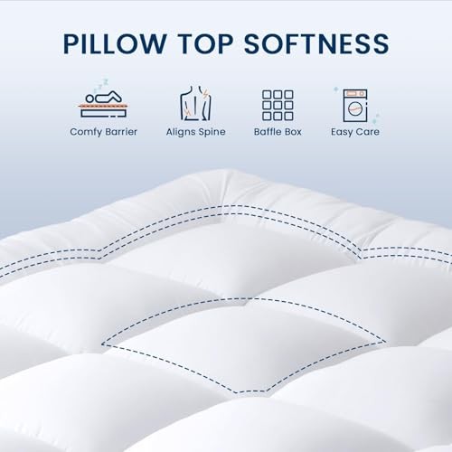 Mattress Topper - Extra Thick Mattress Pad Cover - Pillow Top with Full White