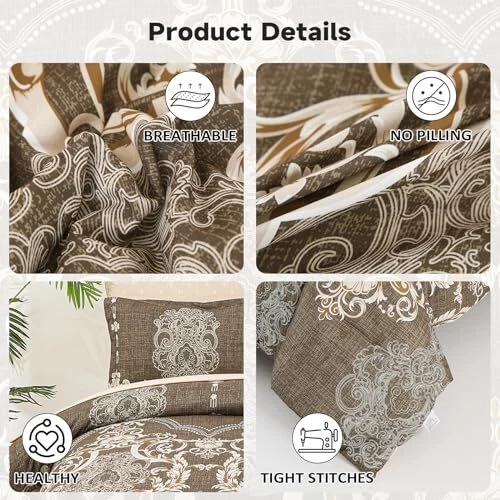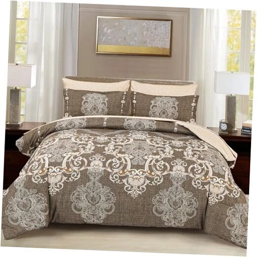 Return Policy Fast Delivery Trusted seller King Size comforter set, 7 Pieces Boho Bed in a Bag for King Bed, Browm Damask Comforter Set with Sheet, Pillowcases & Shams, Soft Microfiber Lightweight Bedding Set for All Season(90"x104") Product Description [7 Pieces King Bedding Set]: Brown damask bed in a bag king comforter (90"x104"), fitted sheet (78"x80"+14"), flat sheet (102"x108"), 2 pillowshame (20"x37"), 2 pillowcases (20"x40"). [Unique Bohemian Brown Damask Comforter Set]: Black boho reversible queen bed sets gives an eye-catching update to your bedroom decor. Classic floral paisley and damask medallion prints bedding set, making this comforter exudes style and luxury, that coordinates with various home decor styles, adding more aesthetic and coziness to your bedroom. [Soft Cozy Thick Comforter]: Our queen bed in a bag is made of microfiber outer fabric with ultra soft inner fill, makes the bed comforter soft touch, lightweight breathable, and fluffy. Good warmth and breathability, ensuring a warm and cozy resting space for you. Boho comforter set queen suitable for all seasons, providing you all-year round healthier sleep quality. [Enhanced Durability]: Unique bohemian queen bedding sets, featuring neat stitching construction that ensures a stronger connection at the seams and prevents the filling from shifting. King comforter set modern and noble elements provides timeless elegance and fashion. You could use it to decor your bedroom, guestroom or kids room, etc. [Easy Care]: This fluffy comforter set queen size is durablility and easy to maintain. 7 Pieces comforter sets is machine washable in cold water on a gentle cycle, tumble dry low, do not bleach. Tips: Since bed in a bag is packaged in a vacuum bag, it is highly recommended to hang the bedding out in the sun and tap it gently for fluffy. Shipping Returns Payment Shipping Shipping is FREE to all addresses other than APO/PO boxes in the lower 48 states. All our stock ships from US-based warehouses. Shipped via USPS or UPS (depending on location and package weight) Unless stated otherwise, all orders will ship within 24-72 hours of your payment being processed. Check our feedback to see the great reviews of FAST shipping we offer. Returns Seller does not accept returns Payment We currently accept payment via eBay managed payments only. Once payment is cleared, we will dispatch your shipment within 1-3 business days. Please refer to the "Shipping" tab for more information regarding shipping speed to your destination.