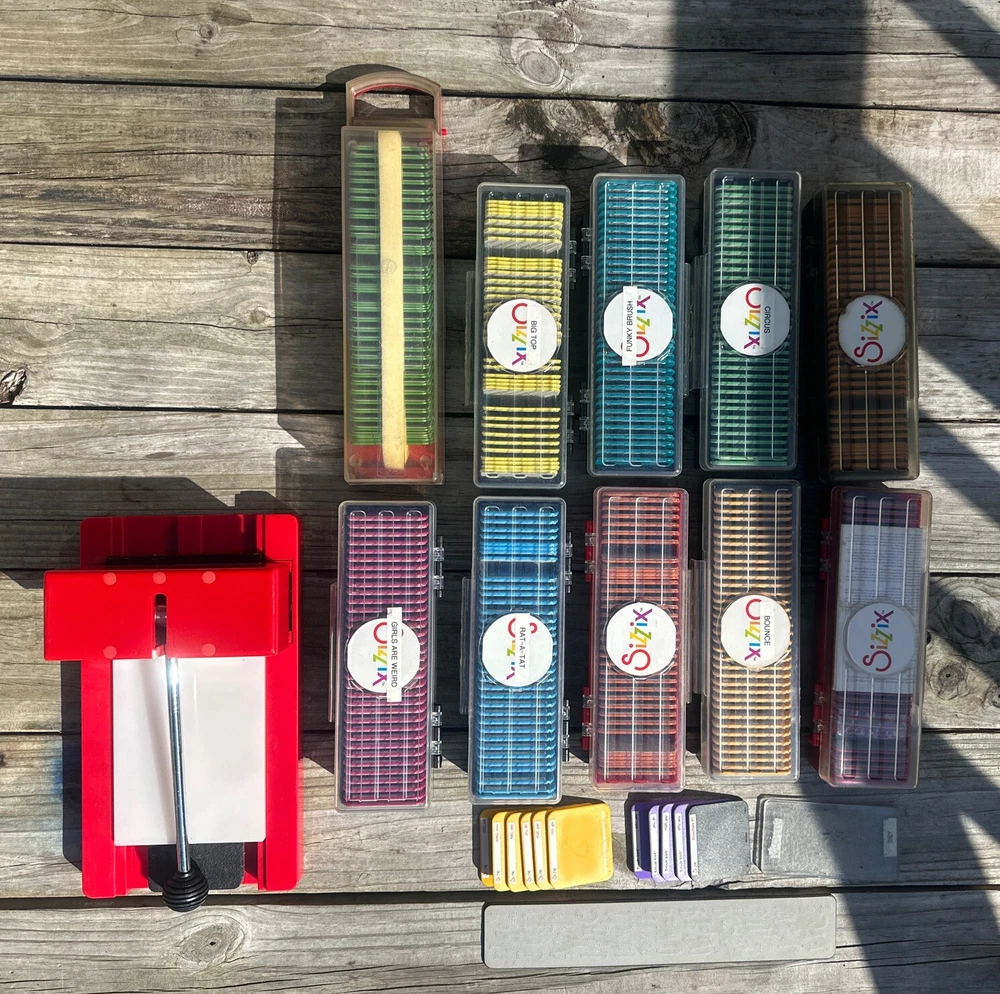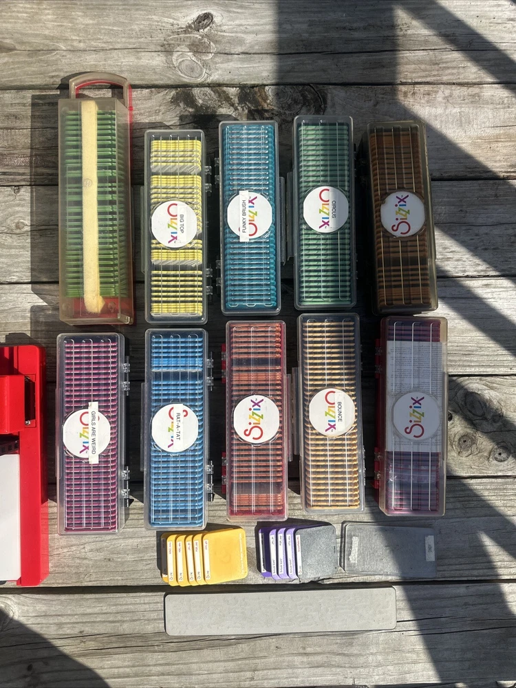 **Sizzix Sizzlits Die Cut Letters/Numbers/Shapes Lot of 12 with Sizzix Sizzlits Press Machine** Unleash your creativity with this fantastic lot of Sizzix Sizzlits Die Cuts! This bundle includes a variety of shapes, letters, and numbers, perfect for all your paper crafting projects. ### Included: - **Sizzix Sizzlits Press Machine** - **12 Complete Sets of Die Cuts:** - Curlie Girlie - Bounce - Circus - Funky - Brush - Big Top - Ratatat - Girls Are Weird - Monkey - Tales - Playground - Plus some extras! ### Key Features: - **Versatile Crafting:** Ideal for scrapbooking, card making, home decor, and other creative projects. - **High-Quality Cuts:** Designed for precision and ease of use, giving you professional-looking results every time. - **Complete Sets:** All sets are complete and ready to use, ensuring you have everything you need to start crafting right away. ### Shipping & Condition: - **Same Day Business Shipping:** Your order will be shipped professionally and promptly. - **Pet Loving, Smoke-Free Home:** Rest assured that your items come from a clean and safe environment. Thank you for your interest! If you have any questions or need more information, please feel free to ask.