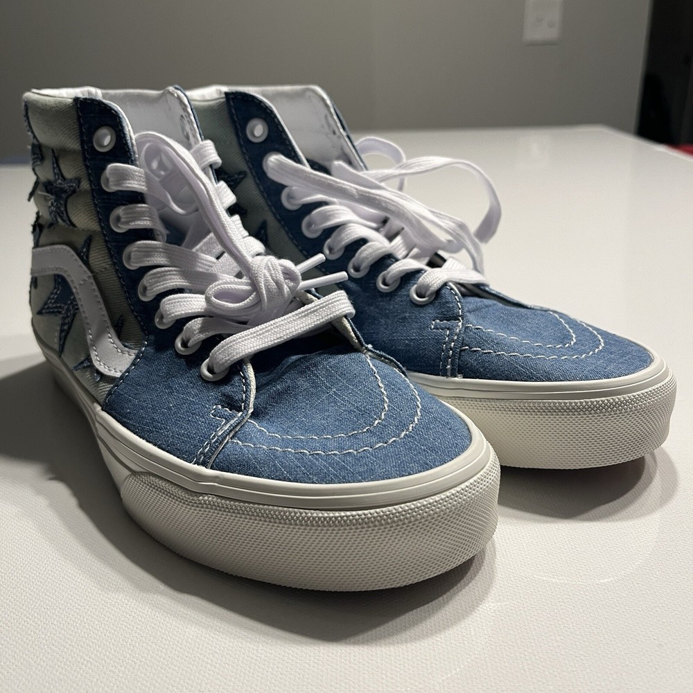 Sk8-Hi “starry Night Denim No box I WILL PACK VERY WELL! It is a size 5.5 in men and size 7 in woman. These shoes are limited addition on the goat app they are going for roughly $150 (see last picture for reference)