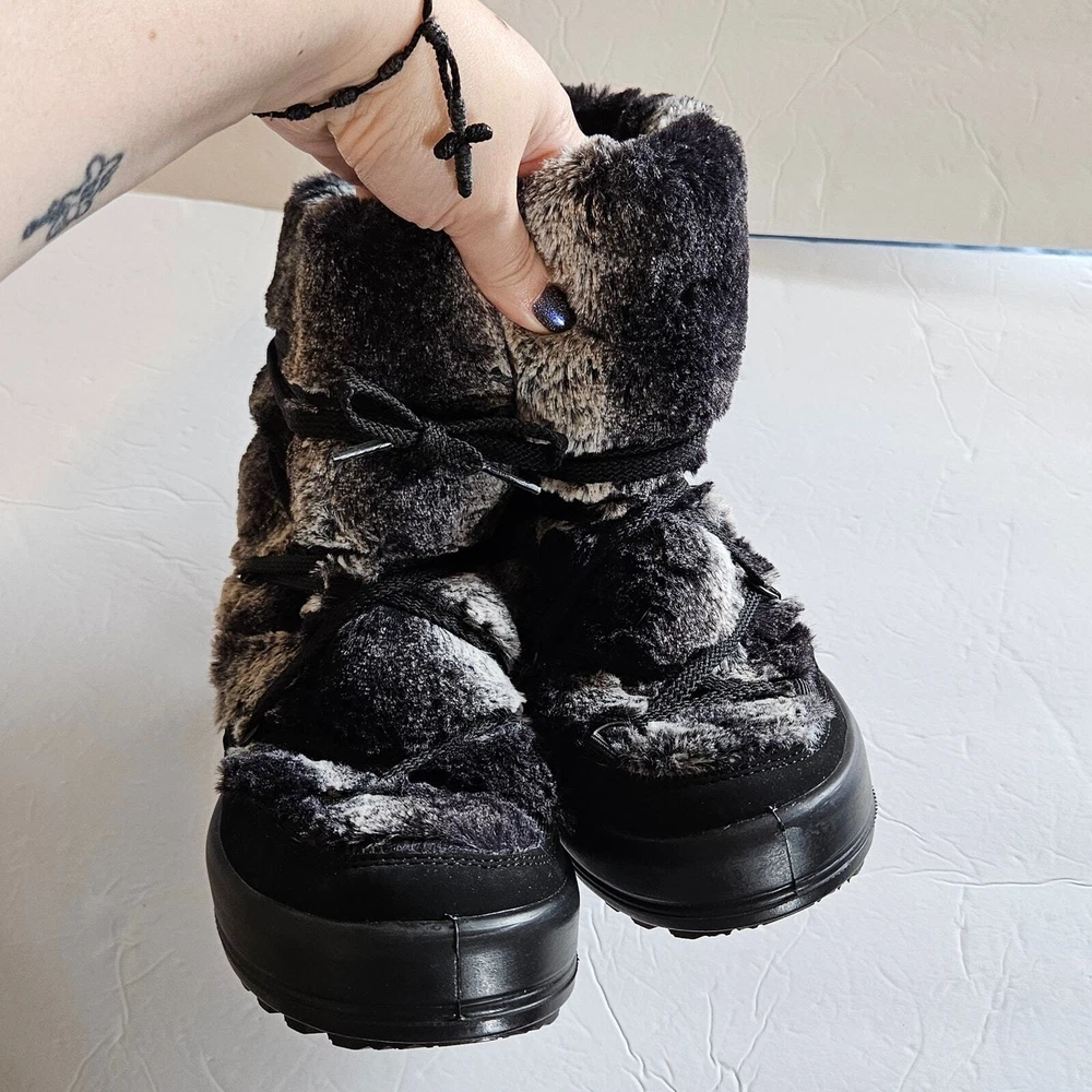 Skandia Faux Fur Lace Up Boot Super Grip Women's EU 38 Winter For unquestionable chic style from the slopes to the city, slip on the Skandia Boots for a delightfully warm and stylish trek through the snow. Skandia-Tex Super Grip bottoms Shearling lining Lace up around the ankle Colors - Black gray Women's EU 38 Heel is about 1.5" with a 1" platform Excellent pre-owned condition, no rips, tears or stains. Looks unworn. Smoke free, dog friendly home. chic unique winter wardrobe comfort warmth ski