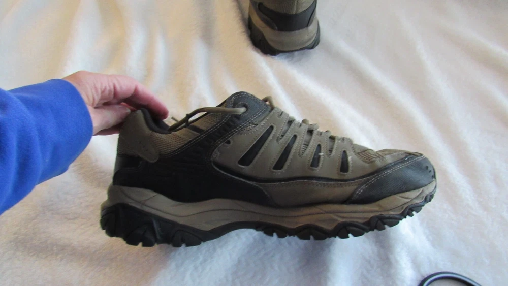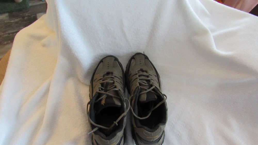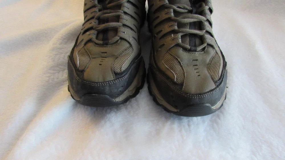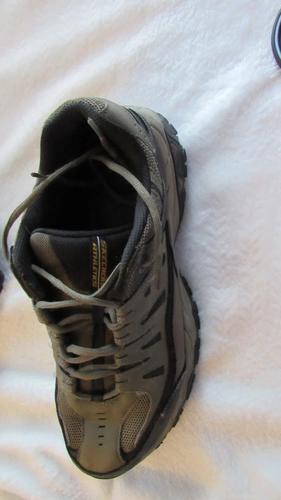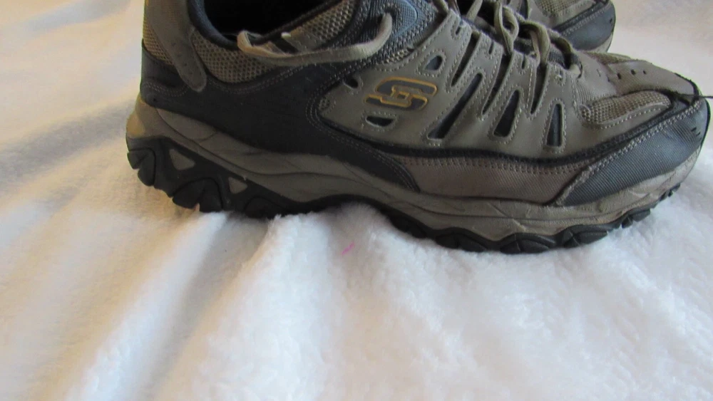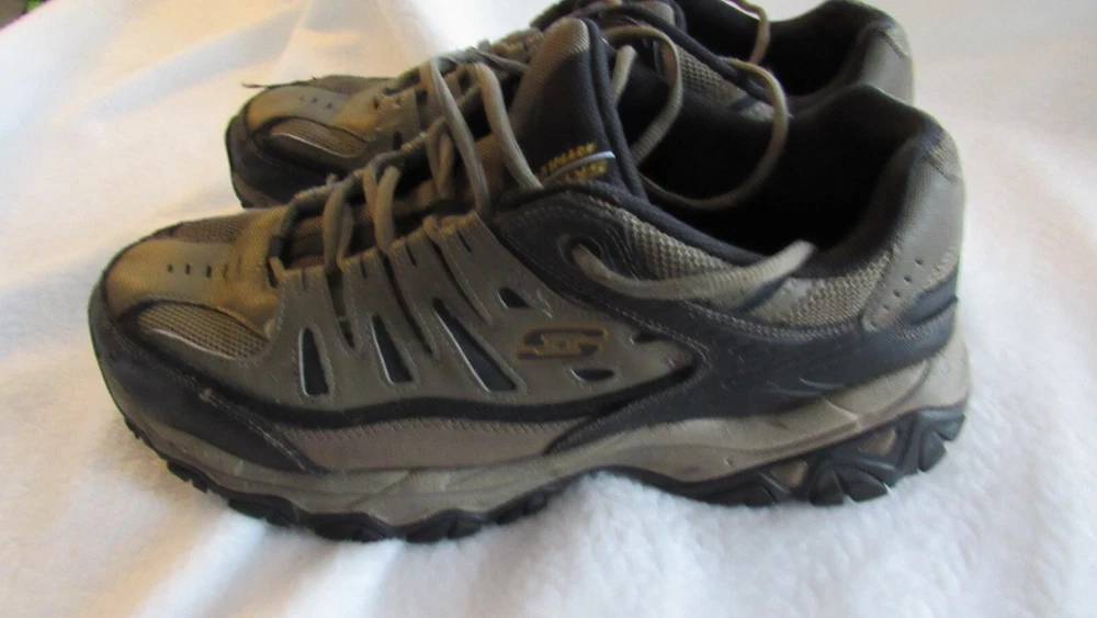 A true classic gets even better with Skechers After Burn - Memory Fit. This lace-up trainer features a leather, synthetic and mesh upper with cushioned Memory Foam insole. Size: 13 Fit: extra wide Condition: preowned in good condition