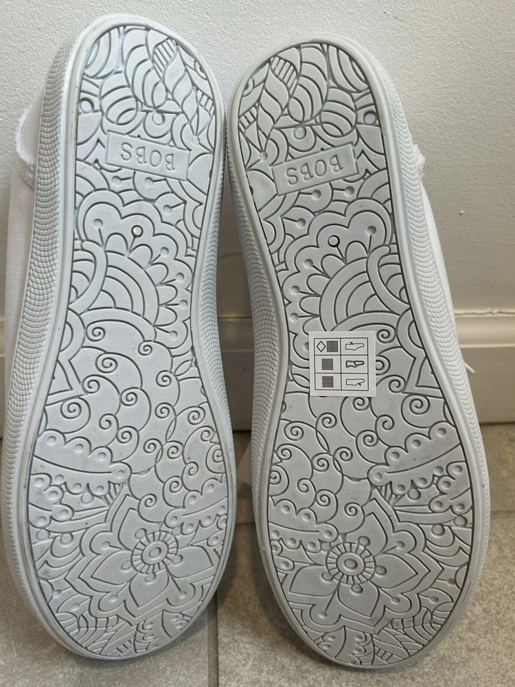 These Skechers Bobs B Cute slip-on shoes are designed for women in a casual style. They feature memory foam for added comfort, have a white color, and come in a US size 8. The upper material is fabric, and they have a B width. Perfect for a comfortable and stylish sneaker option.