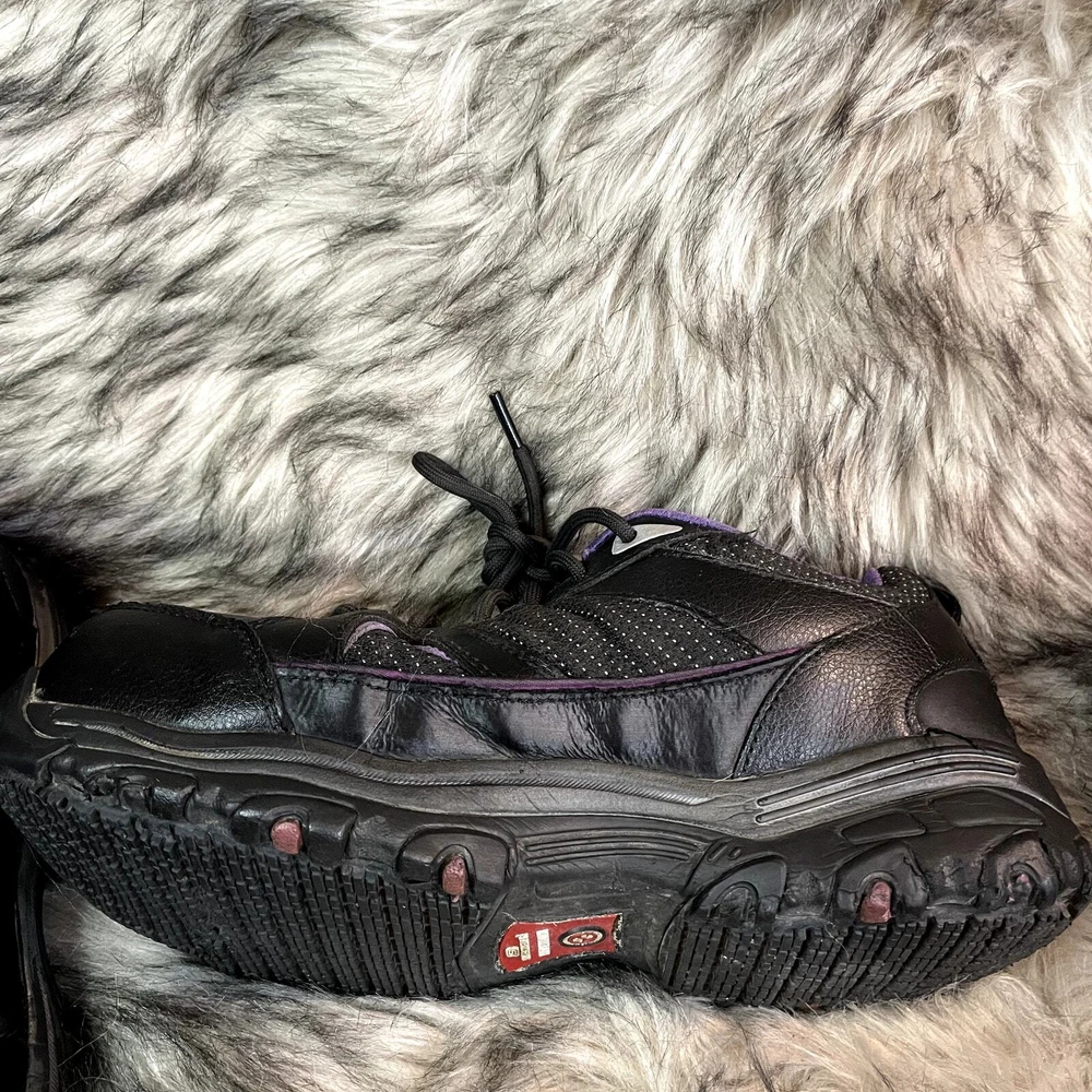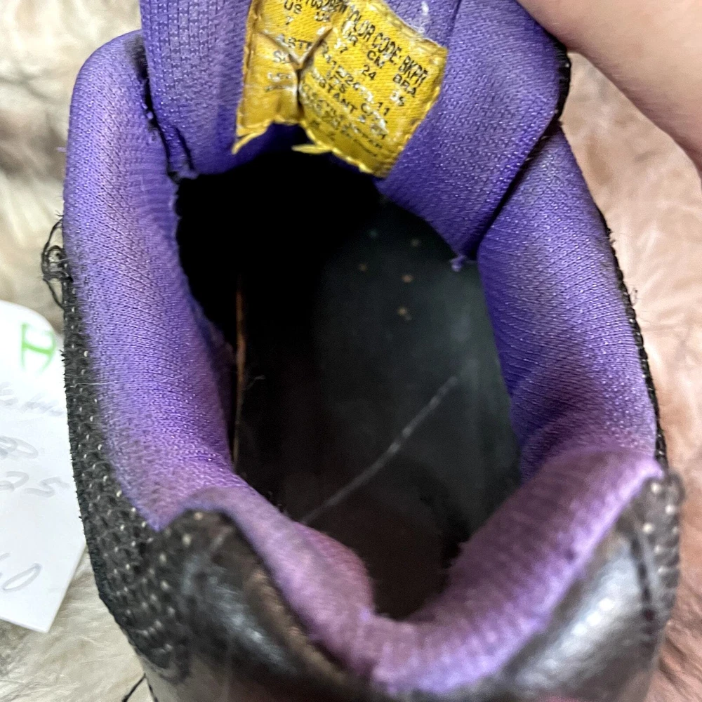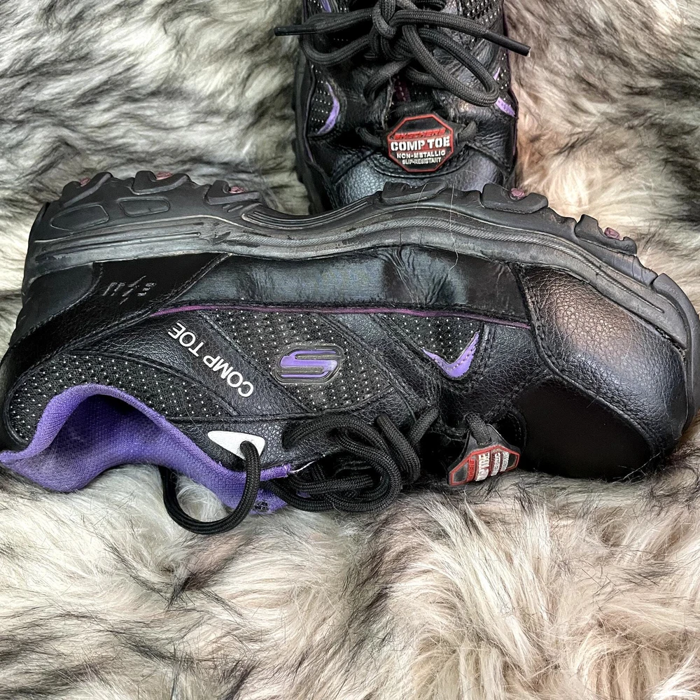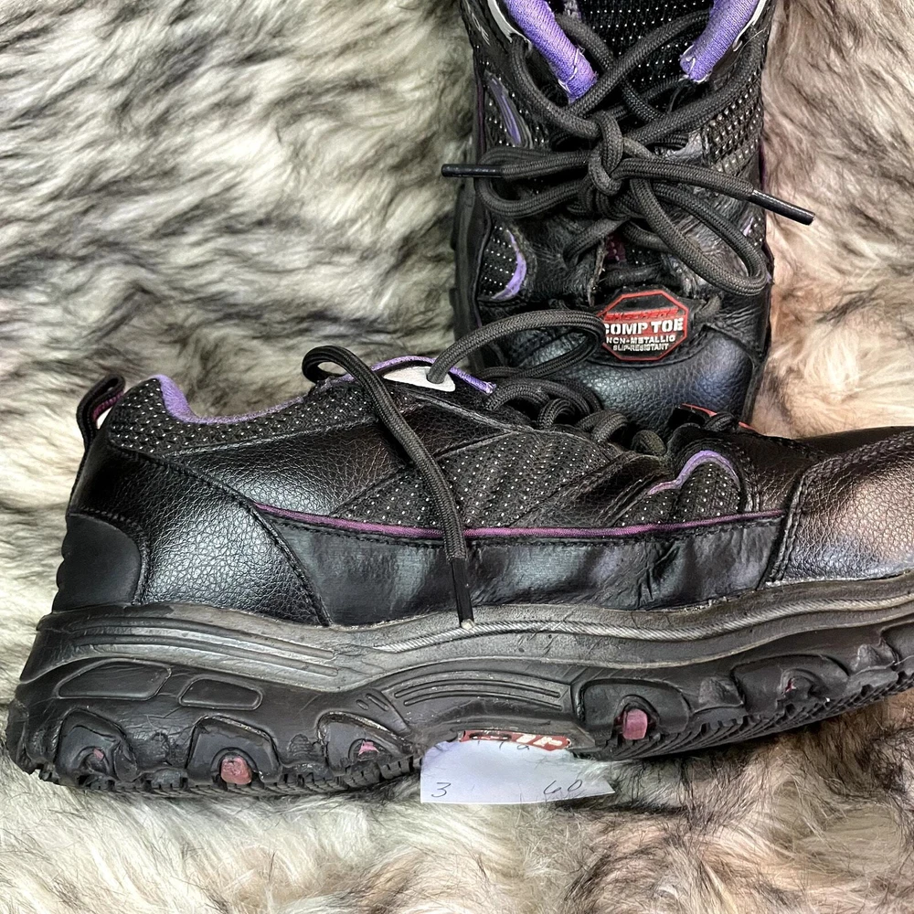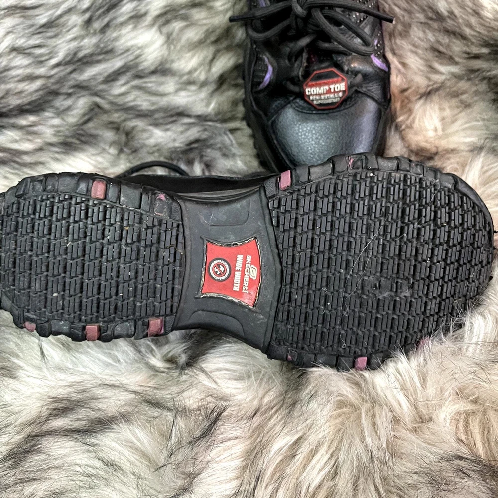 Skechers COMP TOE Size 7 wide , Women Work shoe, non-metallic , Leather slip resistant Composition toe, Black leather with purple trim lace-up You Are Enough 1425 3 lb $60