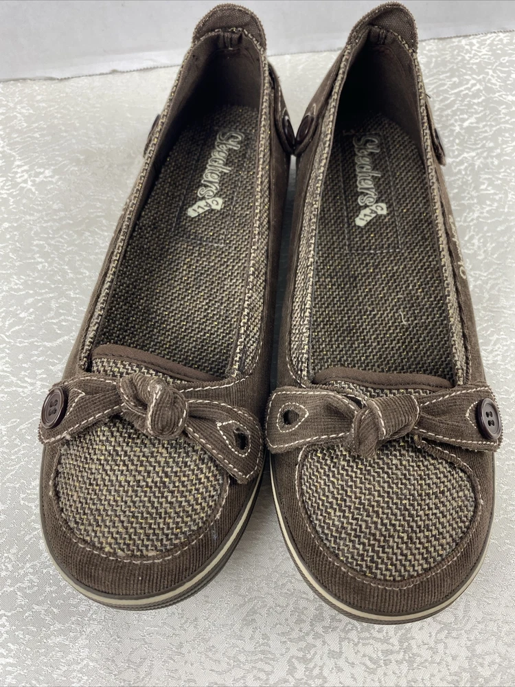 New No Box Slip On With Bow Accents Decorative Buttons Brown Beige 7.5 Walking Shoes Logo Review Photo For Better Description