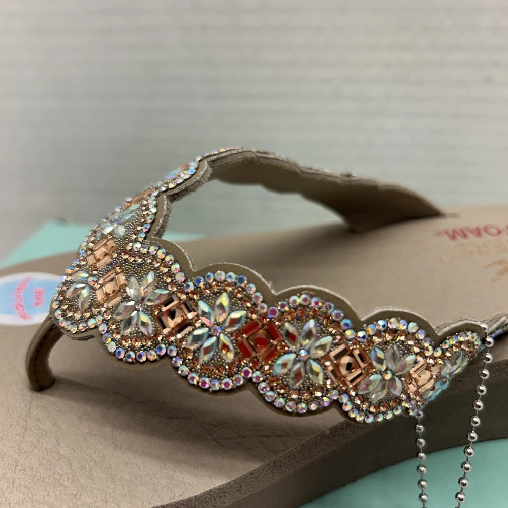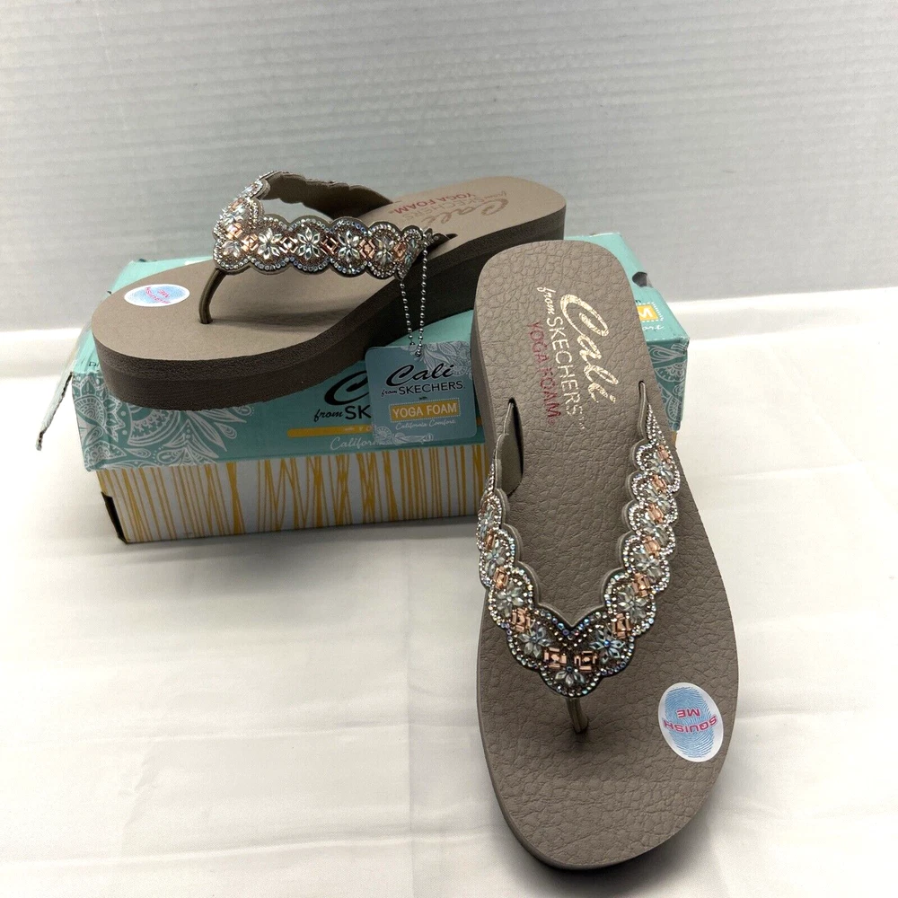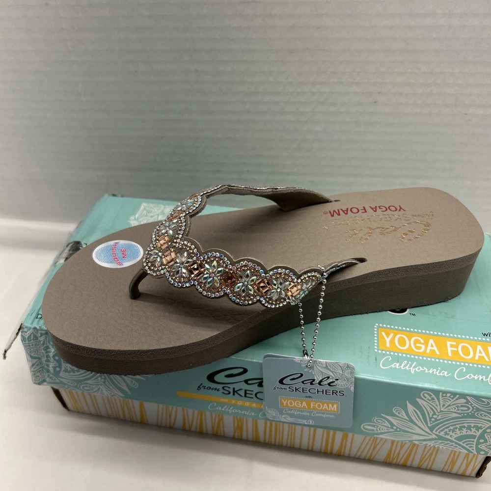 Skechers Cali Vegan Yoga Foam Sandals Happy Spring Taupe/Beaded Womens SZ 9 New in Box (Box has Damage)