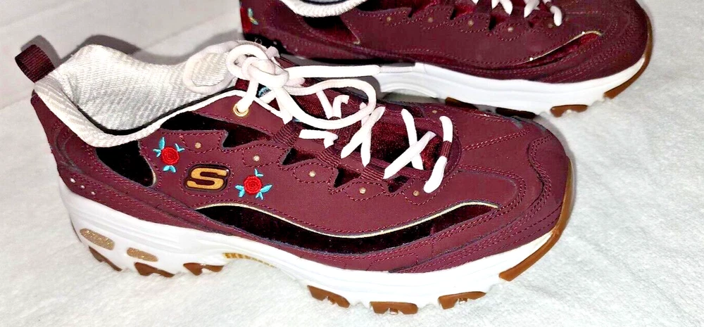 Feature a lace-up closure, low-top shoe shaft style, and a comfortable M shoe width. Unique design with the red floral pattern with rhinestone accents and embroidered logo detailing adds a touch of spark to these athletic sneakers. Sneakers are suitable for activewear, casual wear, and workwear. Arch support, cushioning, and padded insoles for maximum comfort. Ideal for walking, school, and running & jogging. Very Good Condition No blemishes, stains, tears
