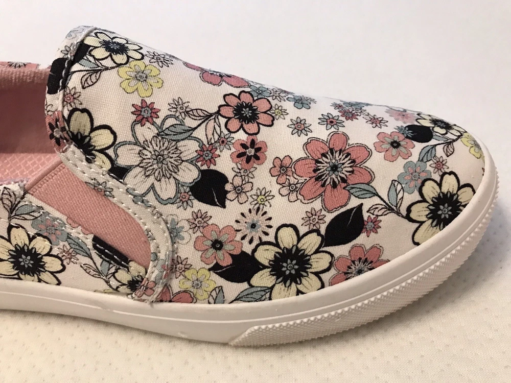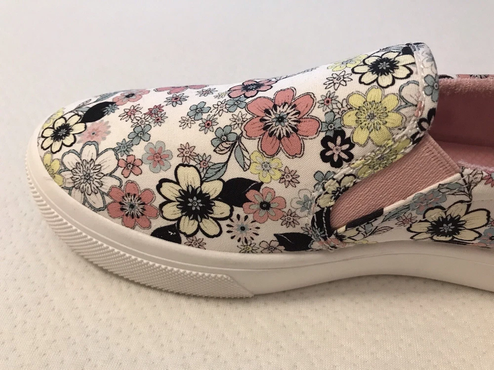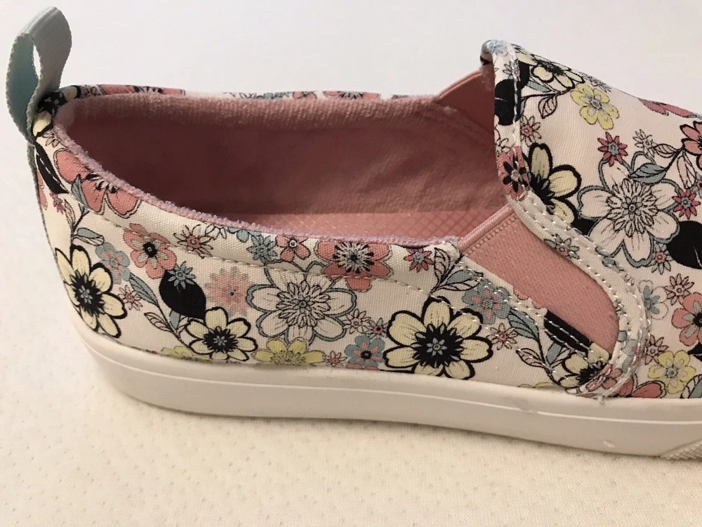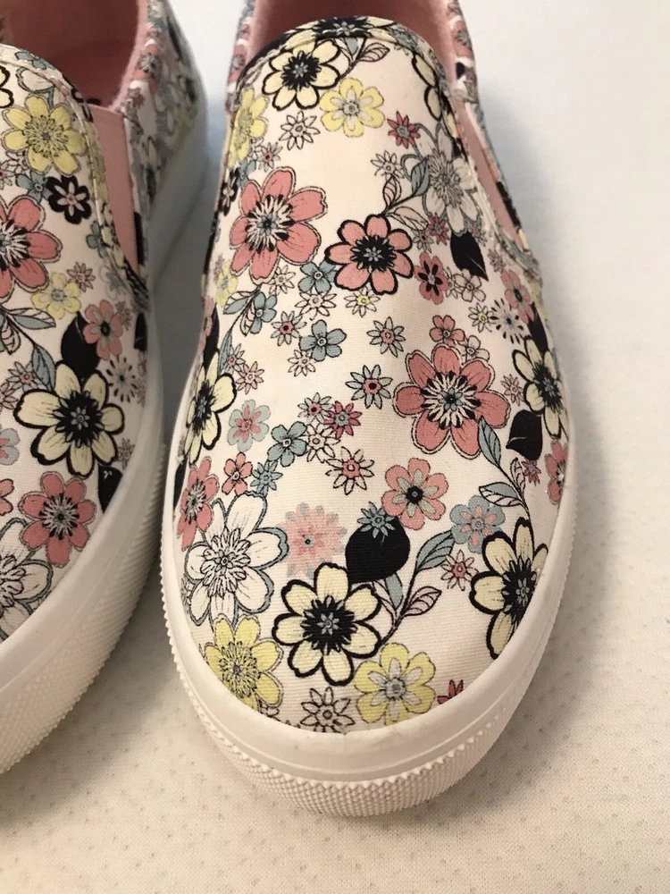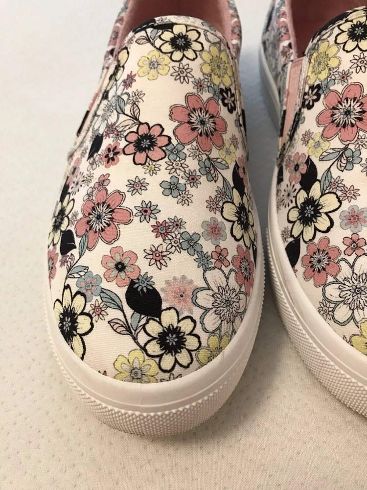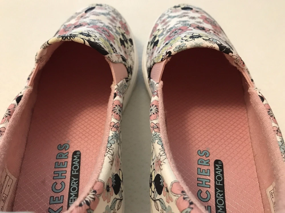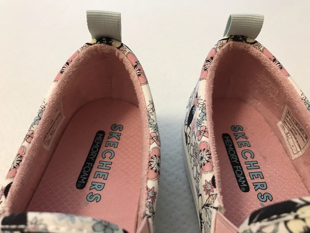 Elevate your style with these charming Skechers boat shoes! Featuring a vibrant floral pattern, these sneakers are perfect for any occasion - whether you're traveling, working out, or just running errands. The round toe and low heel provide both comfort and style, while the pull-on closure makes them easy to wear. Made with memory foam and breathable fabric, these shoes are perfect for those long walks or workouts. The rubber outsole ensures durability and longevity, while the cushioned insole provides added comfort. Available in US size 8.5, these preppy and colorful sneakers are a must-have for any shoe collection. In a smoke free home.