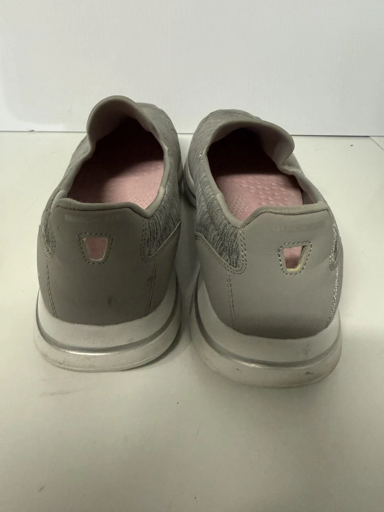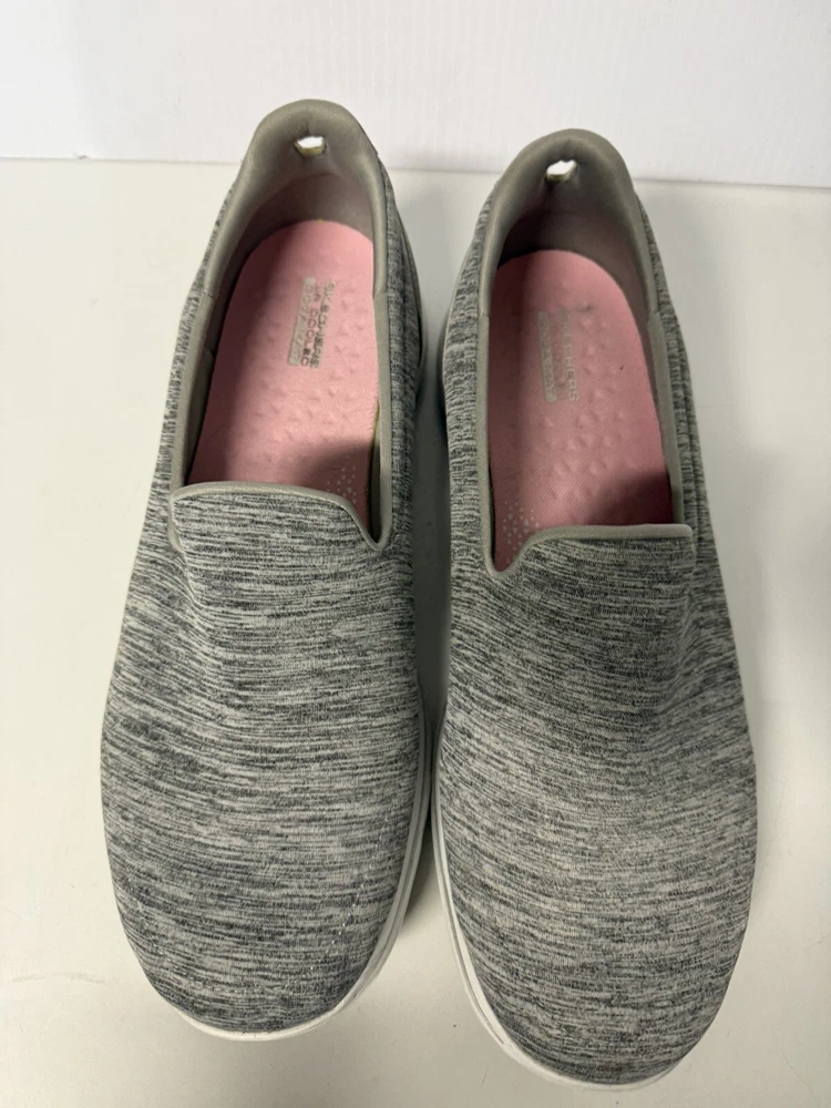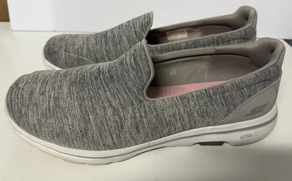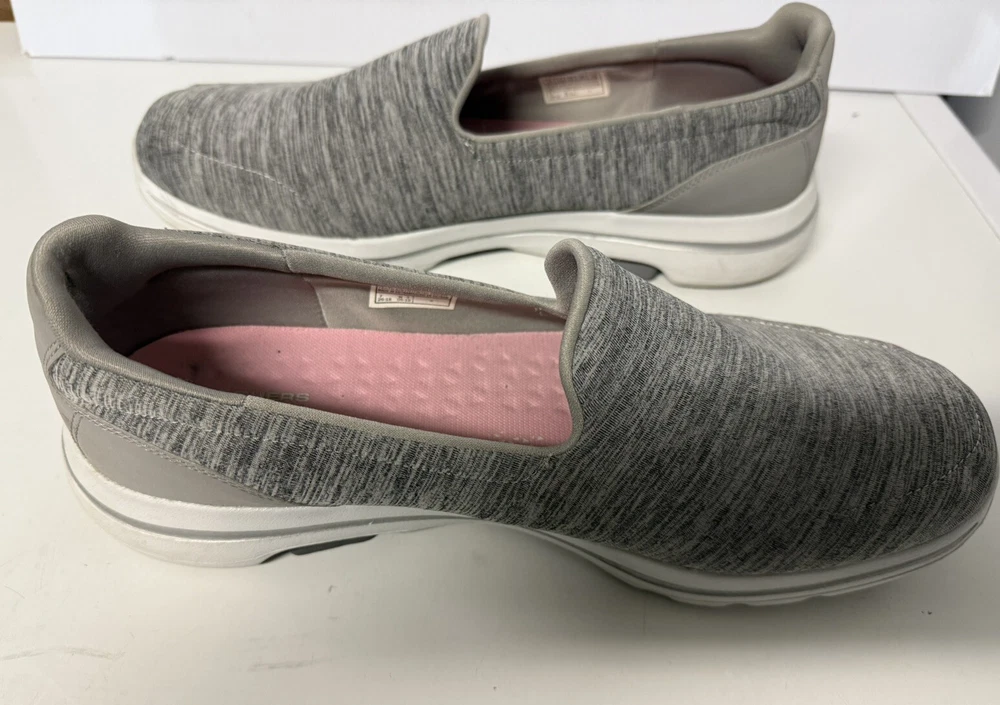 Take your walking game to the next level with these Skechers GO Walk 5 Goga Mat Slip-Ons in Gray. The comfortable foam insole and flat outsole provide a smooth and effortless experience, perfect for everyday wear. These size 13 women's shoes are designed with a solid pattern and fabric upper material, making them a stylish and practical addition to any wardrobe. The slip-on style and synthetic outsole ensure easy wearability, while the Goga Mat technology offers superior support and comfort. Perfect for casual walks or running errands, these Skechers Gowalk 5 Honor shoes are a must-have for any woman on-the-go.