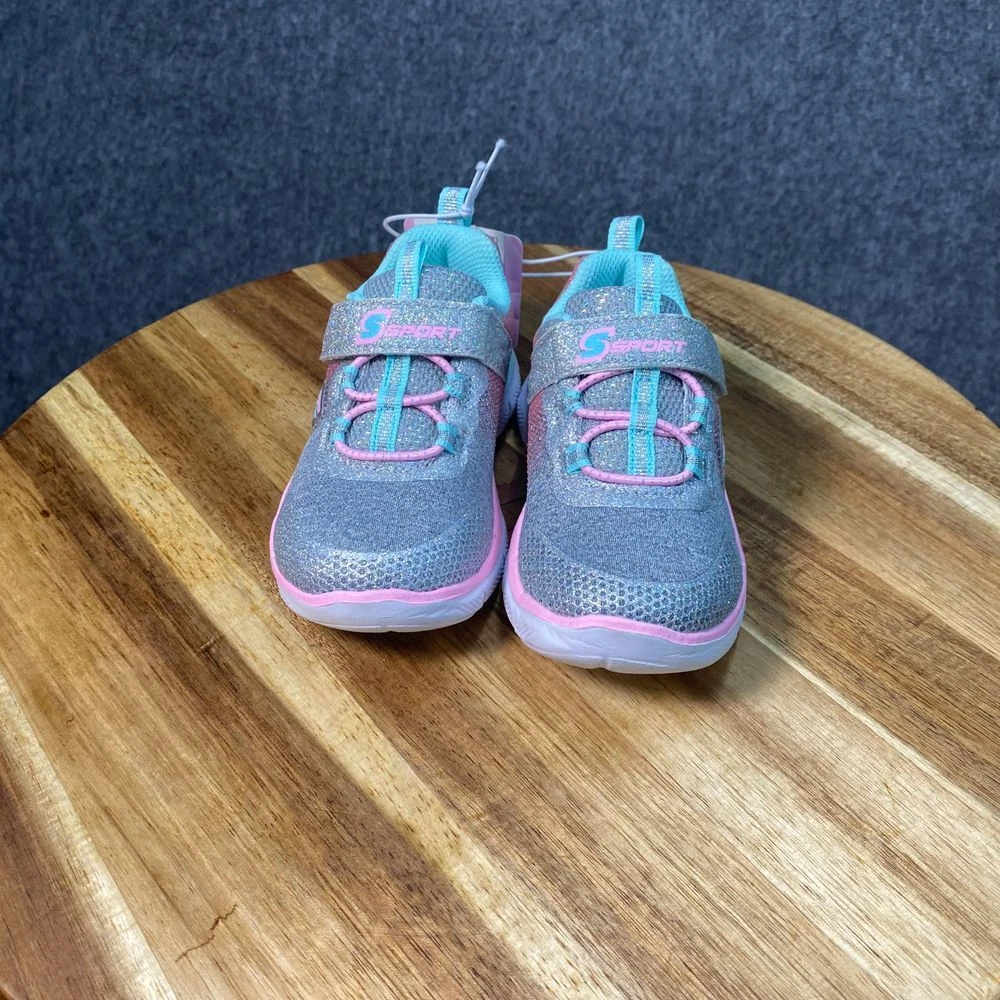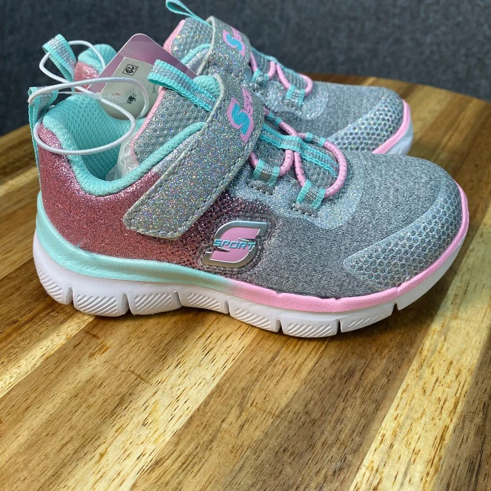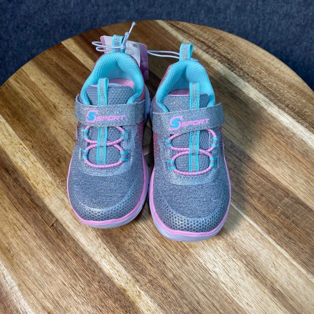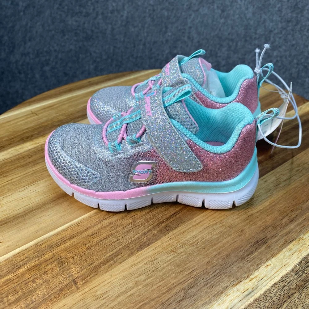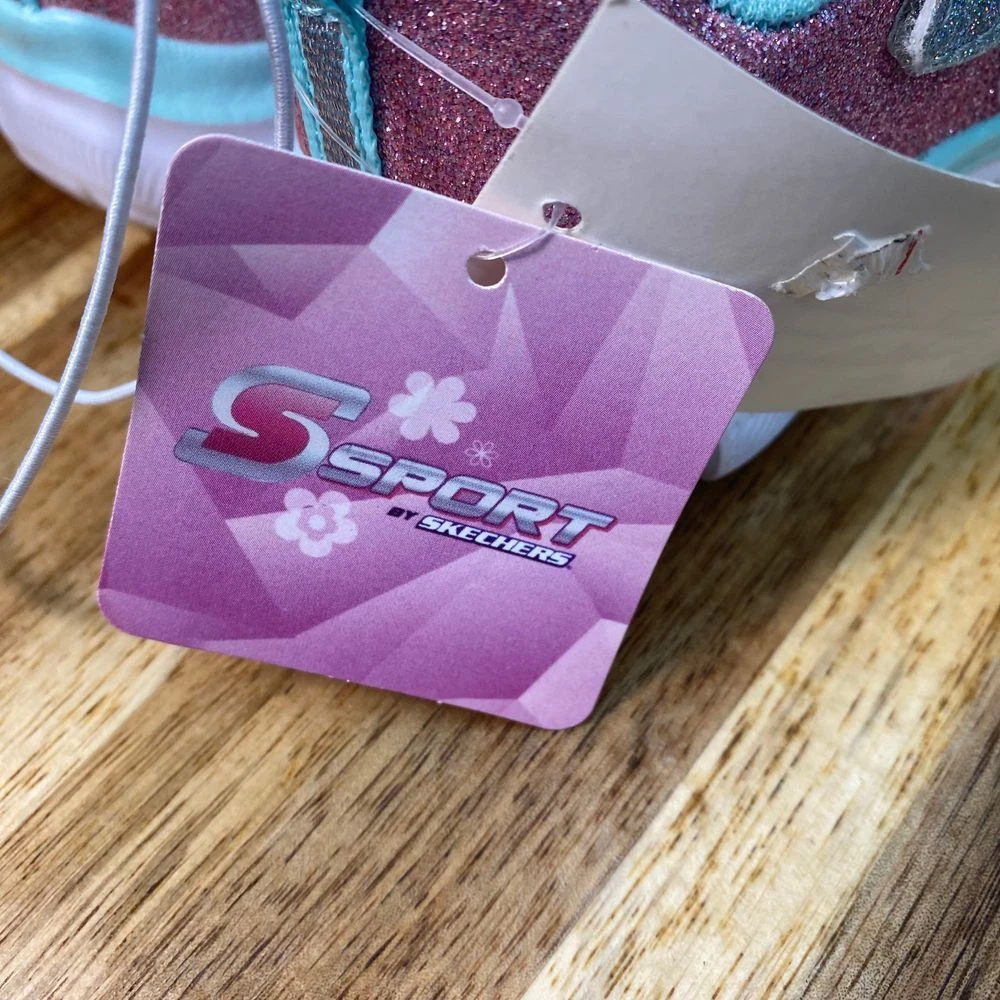 New with tags Skechers athletic sneakers featuring glitter details, memory foam insole, and elastic laces with hook-and-loop strap closure. Color: Multicolor Department: Girls Style: Athletic Sparkle Sneaker Type: Athletic Heel Height: Flat (Under 1 in) Model: Skechers Sport Sparkle Lite Upper Material: Synthetic Keywords: skechers, girls sneakers, athletic shoes, sparkle shoes, glitter sneakers, memory foam, hook and loop, elastic laces, comfortable, lightweight, casual shoes, kids shoes, sport shoes See pictures for details and measurements. Thanks for shopping by! *Reasonable offers accepted. * Same or next day shipping. *Bundle to save more * All used items are cleaned, washed, and/or thoroughly steamed before listing. *Clothing may acquire wrinkles during storage and or shipping.