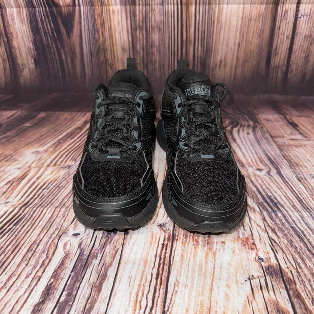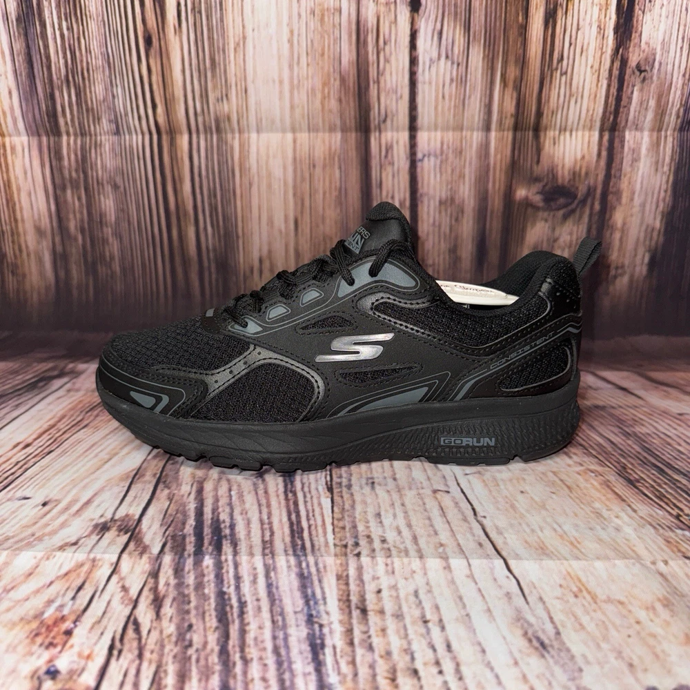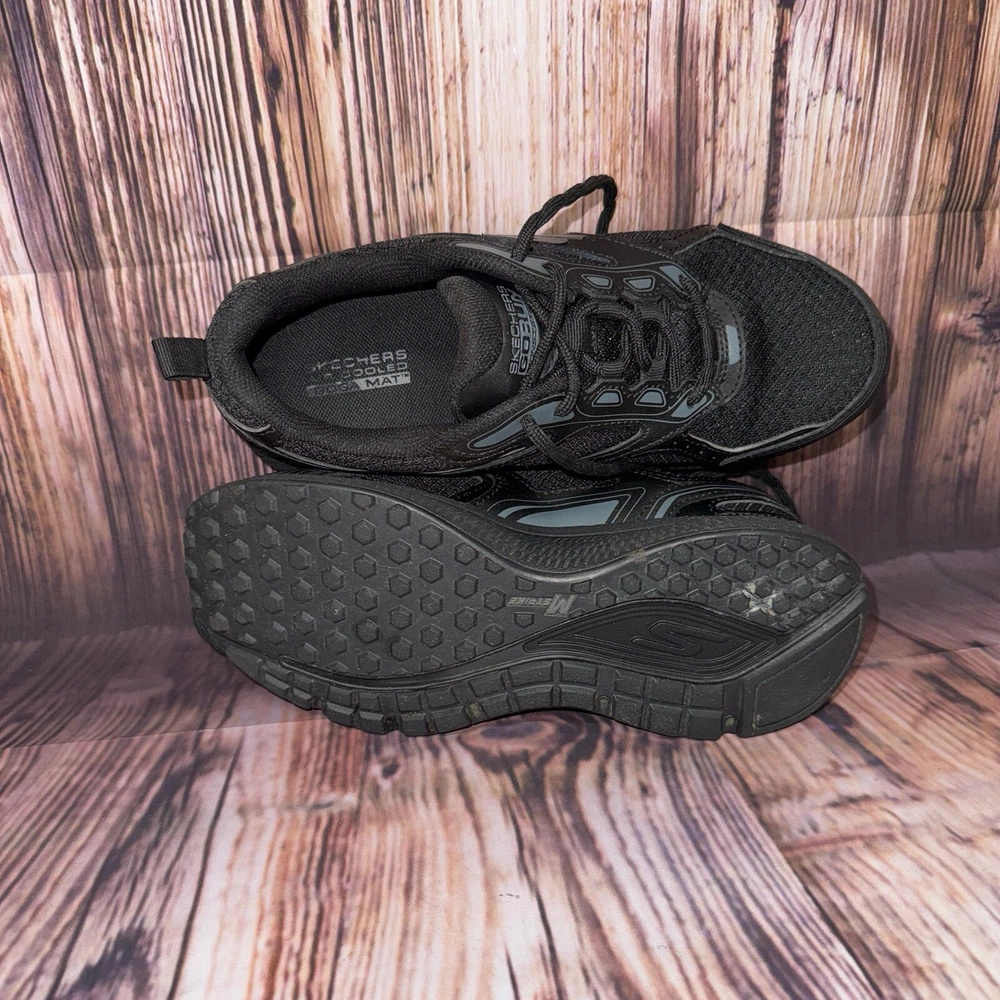 Skechers size 6 Go Run Consistent Sneakers in black on black. Lace closure. Textile upper with leather overlay. Air cooled Goga Mat insole. Padded collar & tongue. Logo on sides & tongue. Go-Run traction soles. Only worn twice- EUC! Retail: $100.00