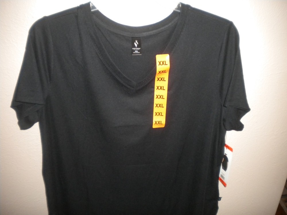 New with tags. Skechers Go Walk Women's Plus Size XXL Black V Neck Short Sleeve Shirt NWT. Short Sleeve.Pullover. 91% Polyester and 9% Spandex. Chest about 52". Length about 31". Weighs about 8oz. Buy with Confidence I have over 25,000+ Positive Feedbacks. Measurements are approximate and can vary depending on where they start and end. I cannot guarantee fit but I try and give as much information as possible to help you make a great Purchase. Shipping is based upon weight (which I provide in all listings) and the Shipping Option you choose, 4 options are available. The shipping offered is my Discounted Rate passed onto you the Buyer. Shipping daily. Please understand that I do my best to describe color. I can't guarantee that my Color will be your exact Color since Monitors and Opinions Vary. Offers are considered on certain items, use the "Best Offer" button. Sorry, I DO NOT ACCEPT RETURNS, feel free to ask questions. Each month I select a Charity to Donate to for many of my listings. I try to use recycled Shipping Materials whenever possible. Your Business is appreciated and if you like what you see, browse my Store to find more items you will love. Add me to your Favorites as New items are added Daily. Thank you! 4l