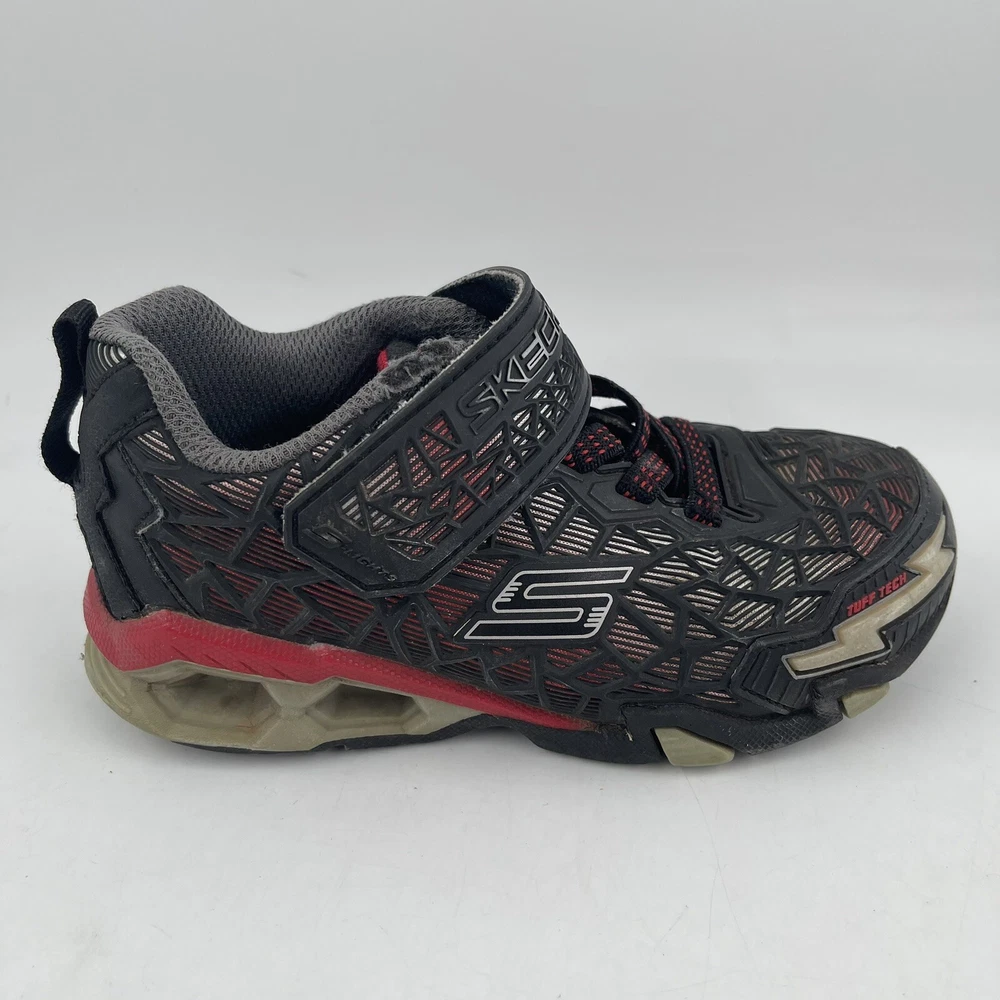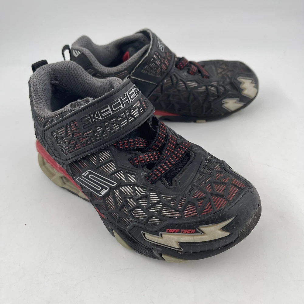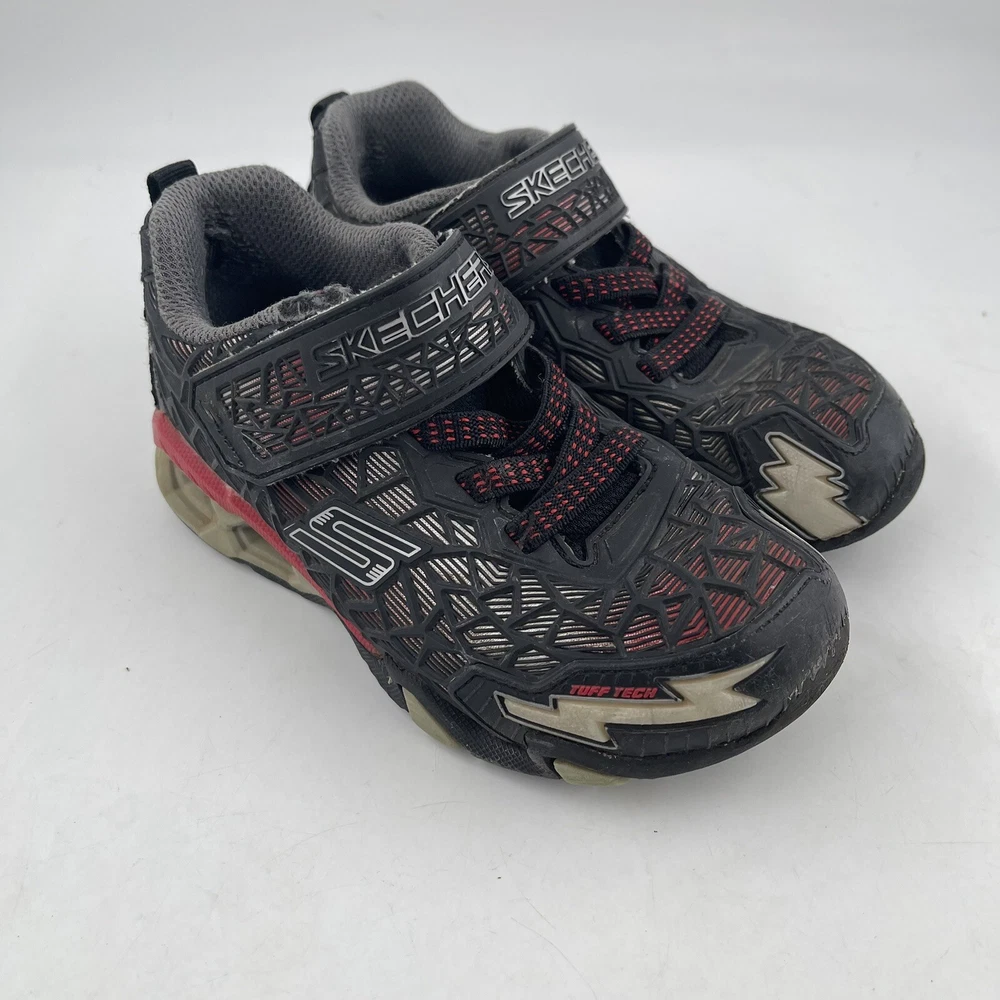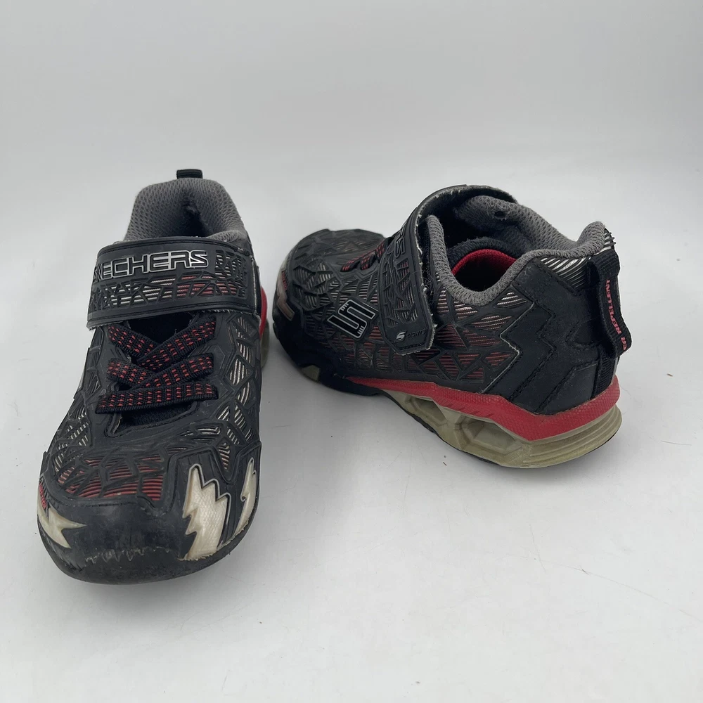 Occasion: Activewear, Casual Toe Shape: Round Toe Season: Fall, Spring, Summer, Winter Style: Sneaker Insole Material: Foam Shoe Shaft Style: Low Top AU Shoe Size: 11 Character: Boy Department: Boys Accents: Logo UK Shoe Size: 11 EU Shoe Size: 28.5 Outsole Material: Rubber Brand: SKECHERS Pattern: Geometric UPC: Does Not Apply Country/Region of Manufacture: China Features: Adjustable Strap, Breathable, Comfort, Lightweight, Water Resistant Handmade: No Shoe Width: Standard Type: Athletic gtin13: Does Not Apply Performance/Activity: School, Walking Model: Hydro Lights Tuff Force Product Line: Skechers S Lights Customized: No US Shoe Size: 12 Upper Material: Synthetic Signed: No Color: Black Closure: Hook & Loop Vintage: No