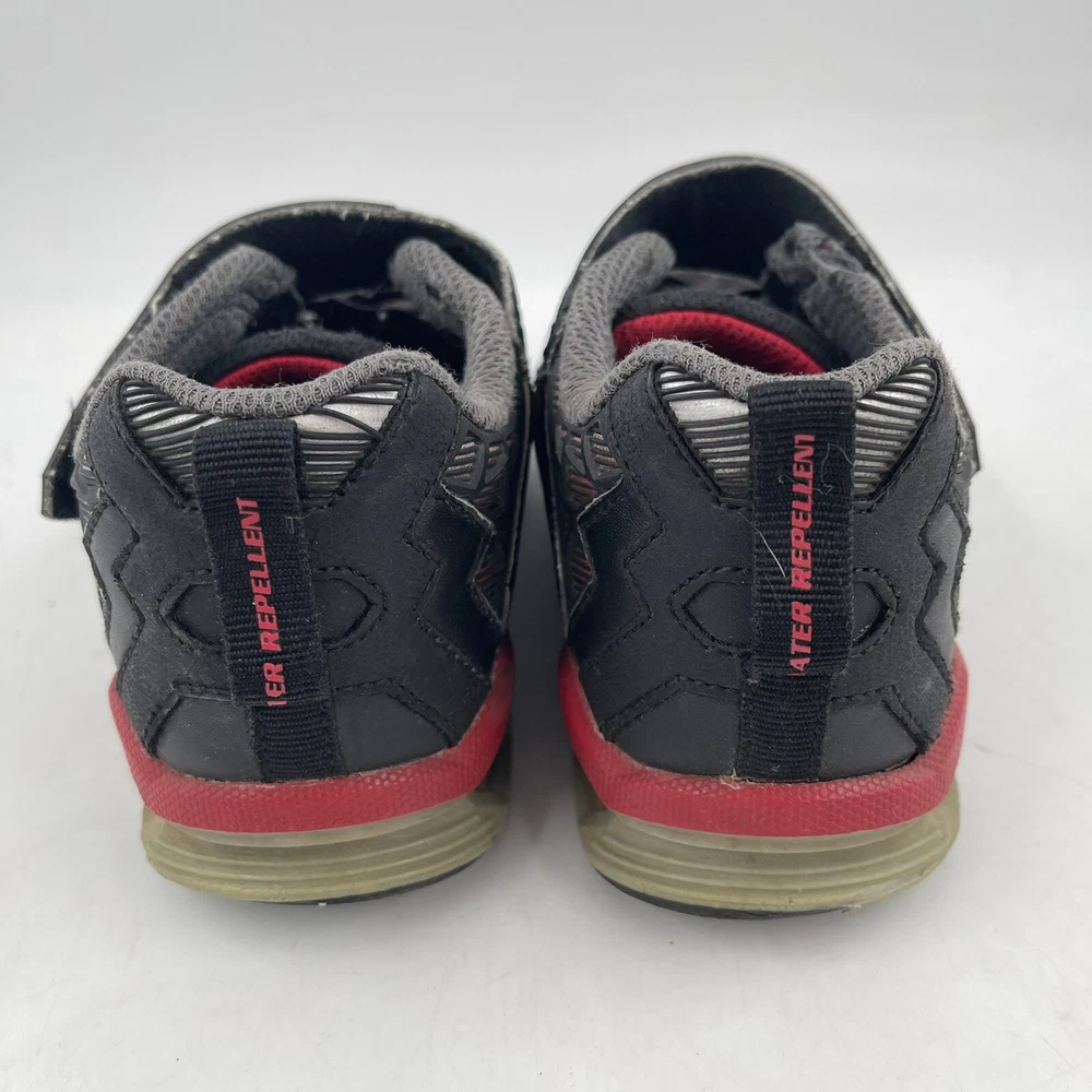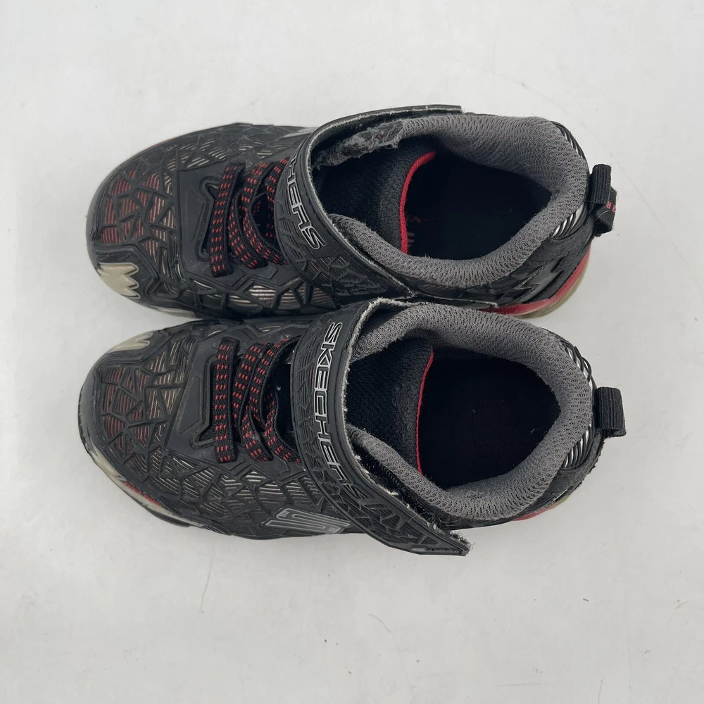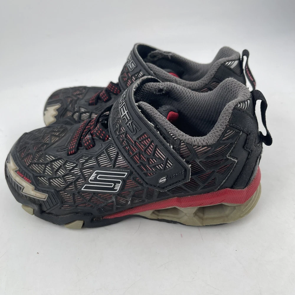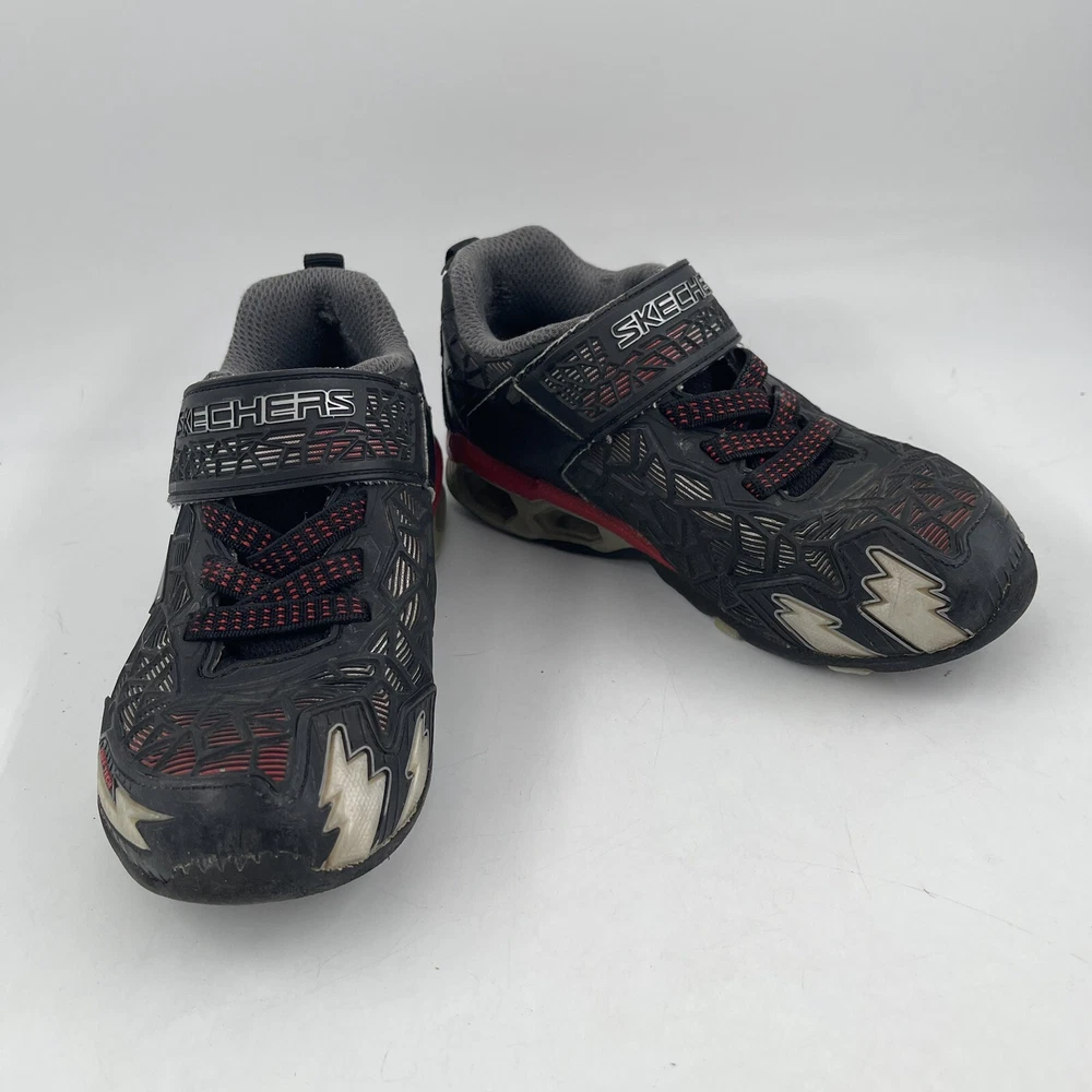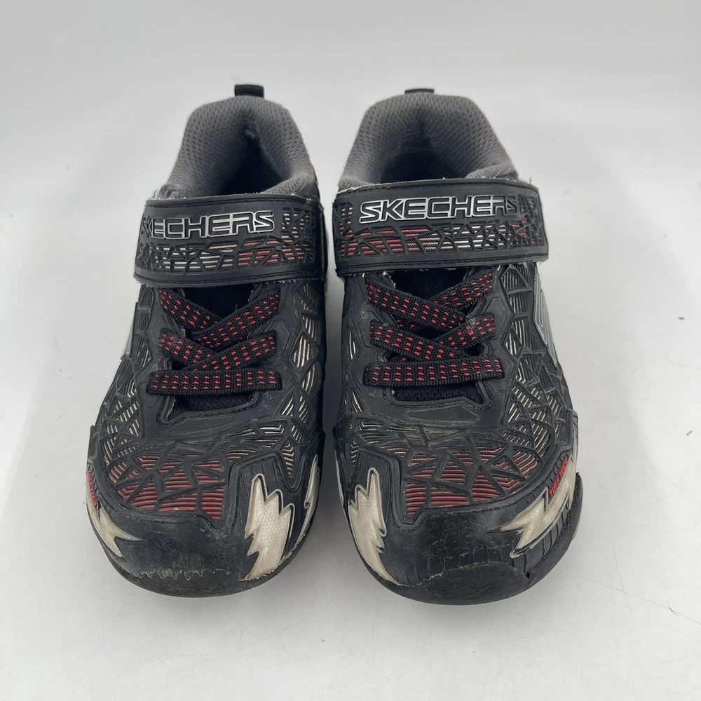 Occasion: Activewear, Casual Toe Shape: Round Toe Season: Fall, Spring, Summer, Winter Style: Sneaker Insole Material: Foam Shoe Shaft Style: Low Top AU Shoe Size: 11 Character: Boy Department: Boys Accents: Logo UK Shoe Size: 11 EU Shoe Size: 28.5 Outsole Material: Rubber Brand: SKECHERS Pattern: Geometric UPC: Does Not Apply Country/Region of Manufacture: China Features: Adjustable Strap, Breathable, Comfort, Lightweight, Water Resistant Handmade: No Shoe Width: Standard Type: Athletic gtin13: Does Not Apply Performance/Activity: School, Walking Model: Hydro Lights Tuff Force Product Line: Skechers S Lights Customized: No US Shoe Size: 12 Upper Material: Synthetic Signed: No Color: Black Closure: Hook & Loop Vintage: No