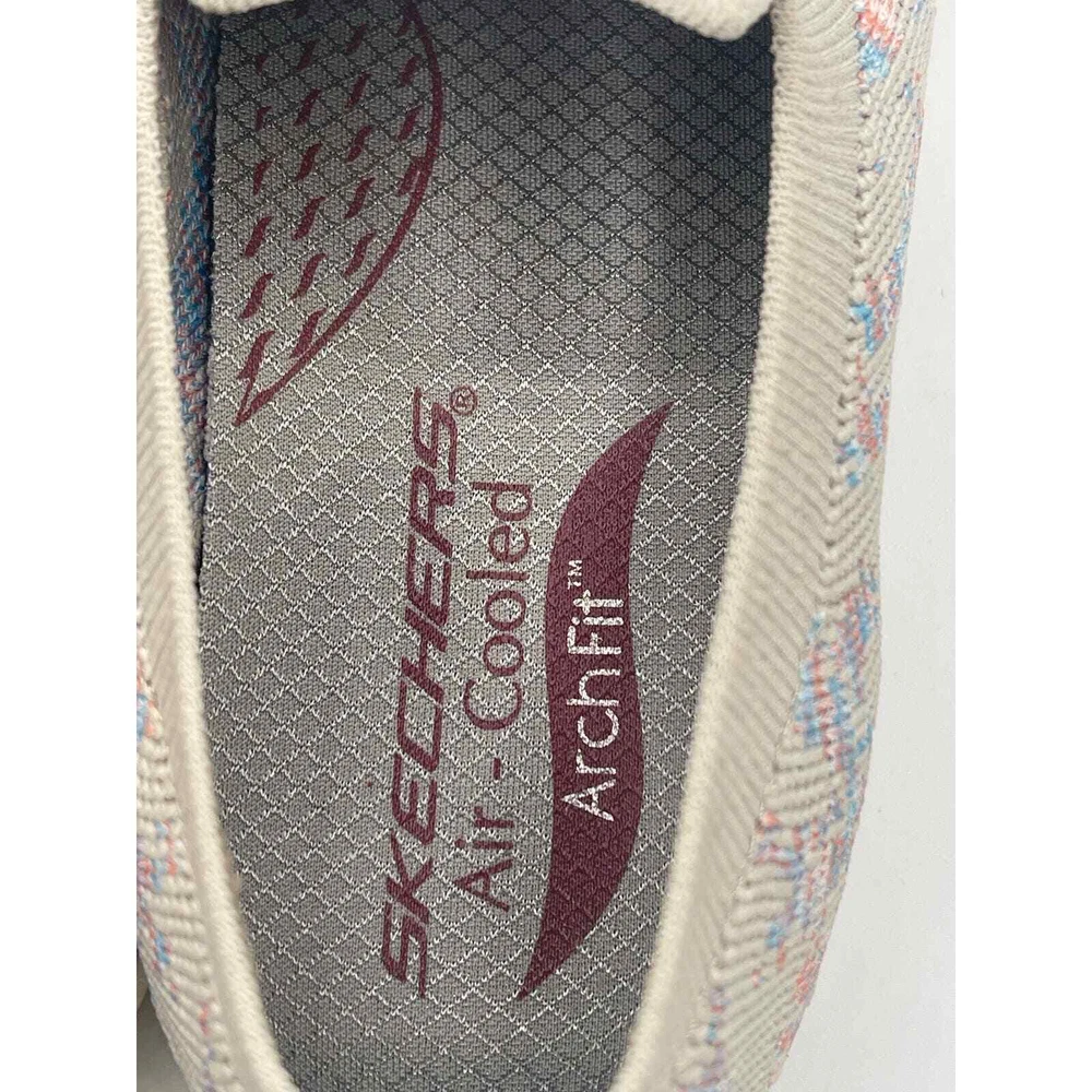 These slip-ons complete any style you're looking to debut this season. Whether you pair them with jeans or your new cute skirt, they're the 'fit finisher you've been searching for. From Skechers. Style: Free Blossom Slip-on style, Stretch Fit engineered knit upper Removable Arch Fit insole, cushioned midsole Approximately 1-3/8"H heel Fit: true to size Textile/man-made upper Machine wash, line dry