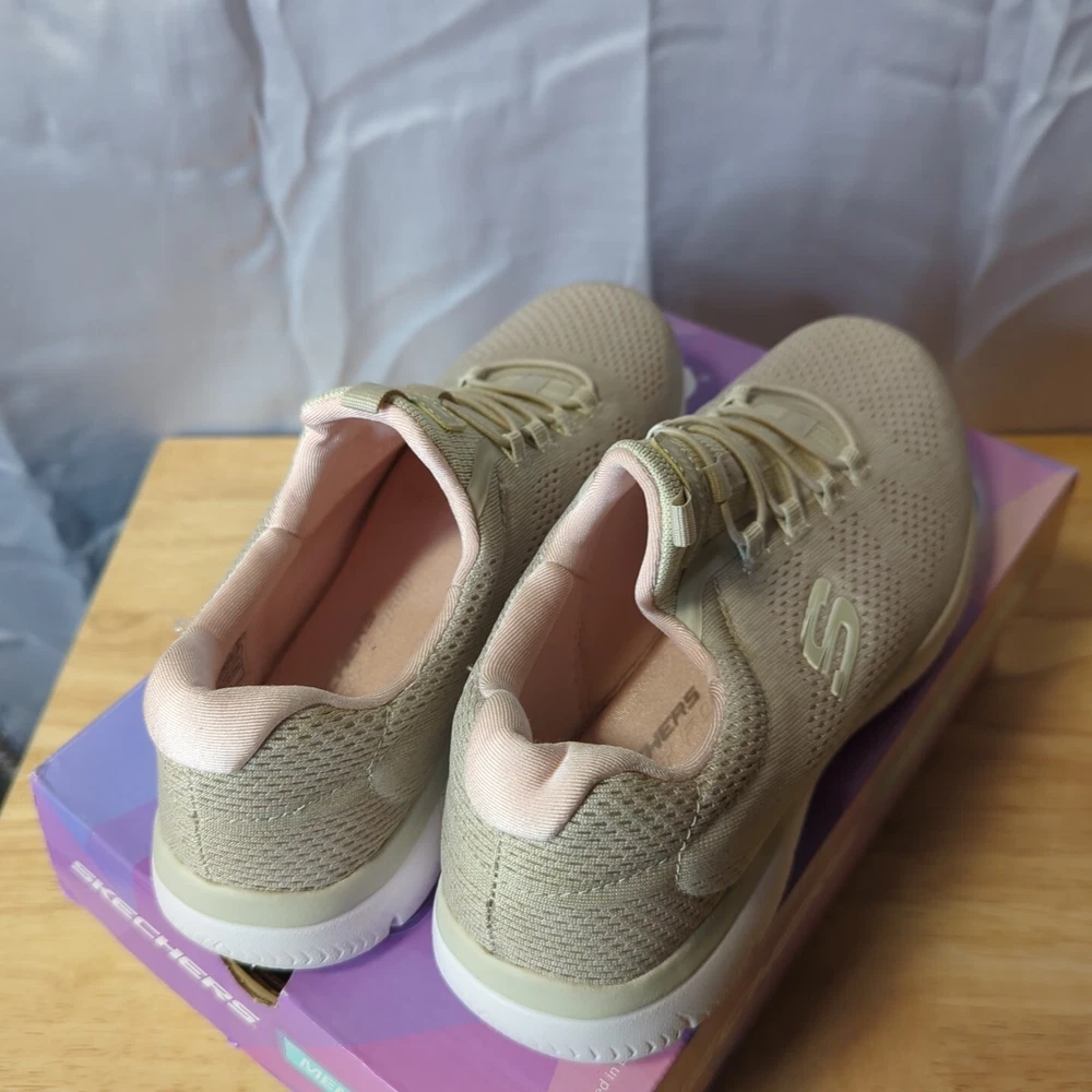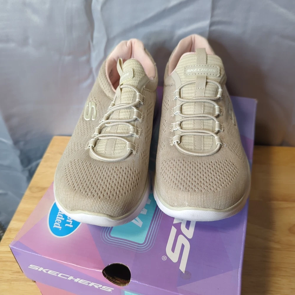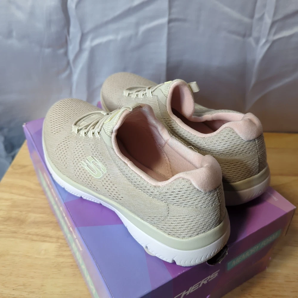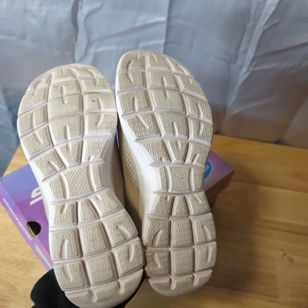 Women's Sketchers memory foam Slight wear on bottoms not too bad comes in box ! 7.5 light pink/nude