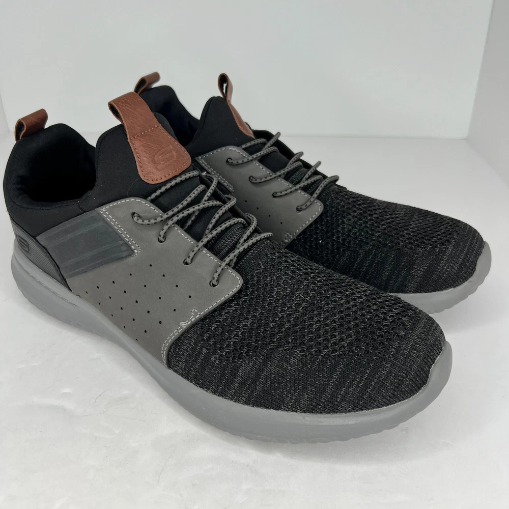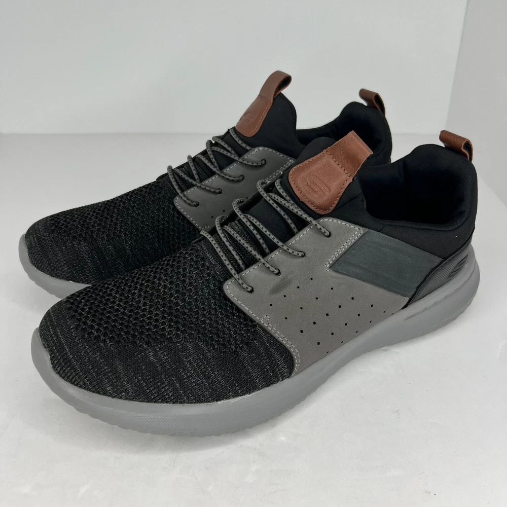 Elevate your casual shoe game with these Skechers Delson Camben sneakers. These slip-on sneakers feature a solid black and gray color scheme, with a round toe and blended fabric upper material. The rubber outsole provides traction and durability, while the memory foam features ensure comfort and support. These sneakers are perfect for any casual occasion, and are available in UK shoe size 10, US shoe size 11, and EU shoe size 45. The Skechers Memory Foam product line guarantees quality and comfort, making these sneakers a must-have for any shoe collection. 100% CUSTOMER SATISFACTION IS OUR GOAL! Our items are always carefully examined for condition, measured if necessary, and photographed in a climate controlled and smoke-free environment. We make every attempt to accurately describe and clearly picture the items we have for sale. Please, ALWAYS view all of the photos. We value your business and our goal is your complete satisfaction. FAST SHIPPING All items are packaged with care and shipped out the same or next business day via USPS, FEDEX, or UPS with tracking numbers so you are always informed. RETURNS We offer a 30-day return policy. All items must be unused and unopened in the condition in which they were received, with original packaging, and all accessories included for return. REVIEWS - CUSTOMER SATISFACTION - COMMUNICATION We aim to make you happy. After you receive your shipment, please leave a positive review . If you have concerns or questions about your order, please contact us so we can resolve the issue. We will do our best to make you satisfied. THANK YOU FOR YOUR BUSINESS!