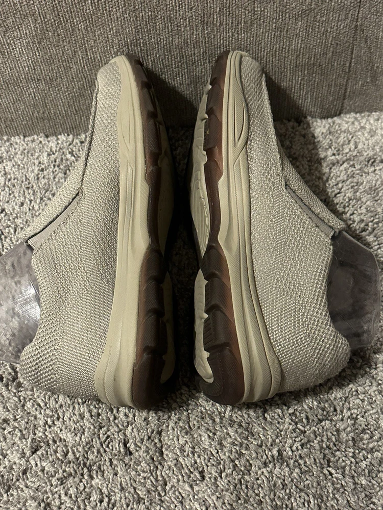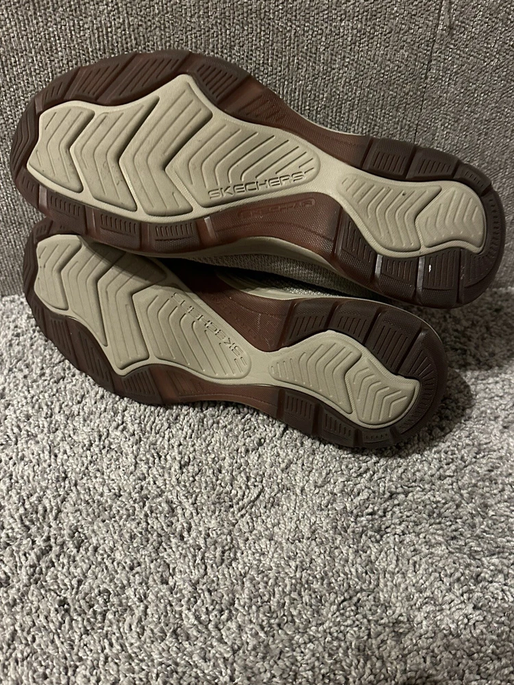 Elevate your casual shoe game with these Skechers Air Cooled Memory Foam slip-on sneakers in a classic beige color. These sneakers feature a synthetic upper material with a fabric lining, making them comfortable for all-day wear. The rubber outsole provides traction and durability, while the memory foam features add to the comfort and support. The sneakers are designed with a slip-on closure, making them easy to wear and take off. They are available in UK shoe size 5.5, US shoe size 6.5, and EU shoe size 39. These Skechers sneakers are perfect for any casual occasion and will keep your feet cool and comfortable throughout the day. Preowned Good Condition