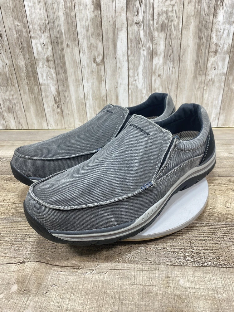 Skechers Men's Extra Wide Fit Relaxed Fit Black Textile Loafers in size 15. Originally distressed. Good condition. Please check all the pictures. *Pre-owned shoes may be slightly bigger than expected by the shoe size.
