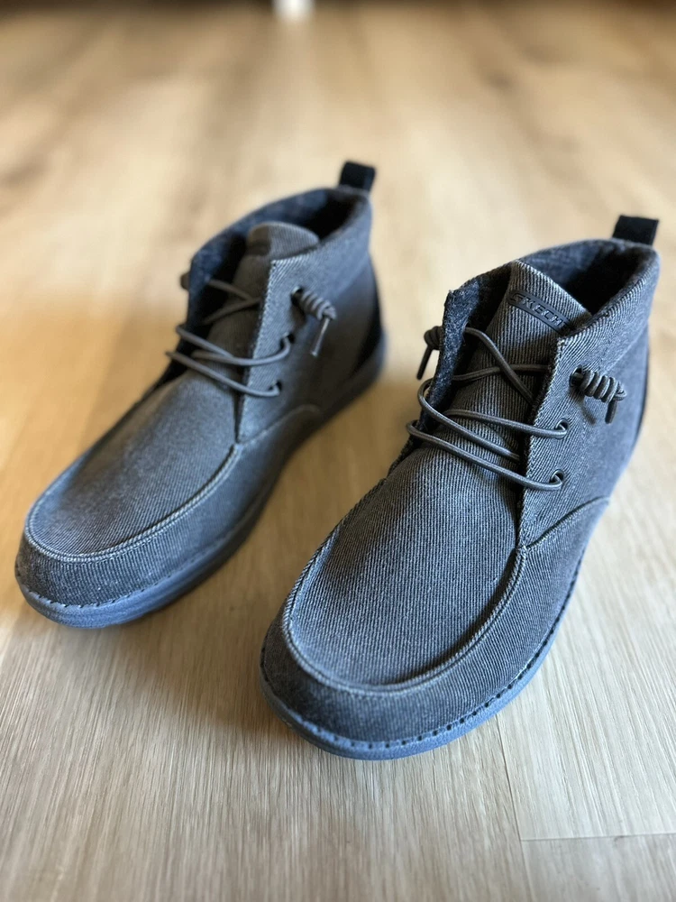Enjoy maximum comfort with these Skechers Melson Chad Goga Mat Arch Relaxed Fit shoes. The blended fabric upper material and lining provide a soft touch, while the rubber outsole offers durable wear. These slip-on shoes are perfect for travel, activewear, and casual occasions. The Goga Mat Arch feature gives you an extra cushioned step, and the lightweight design makes them ideal for any season. The shoes are available in black and gray, in sizes 7.5 UK, 8.5 US, and 41.5 EU. The relaxed fit product line is perfect for outdoor enthusiasts who want to explore nature without sacrificing comfort.