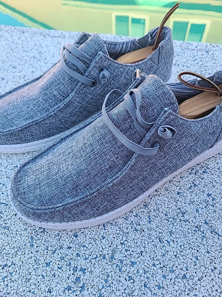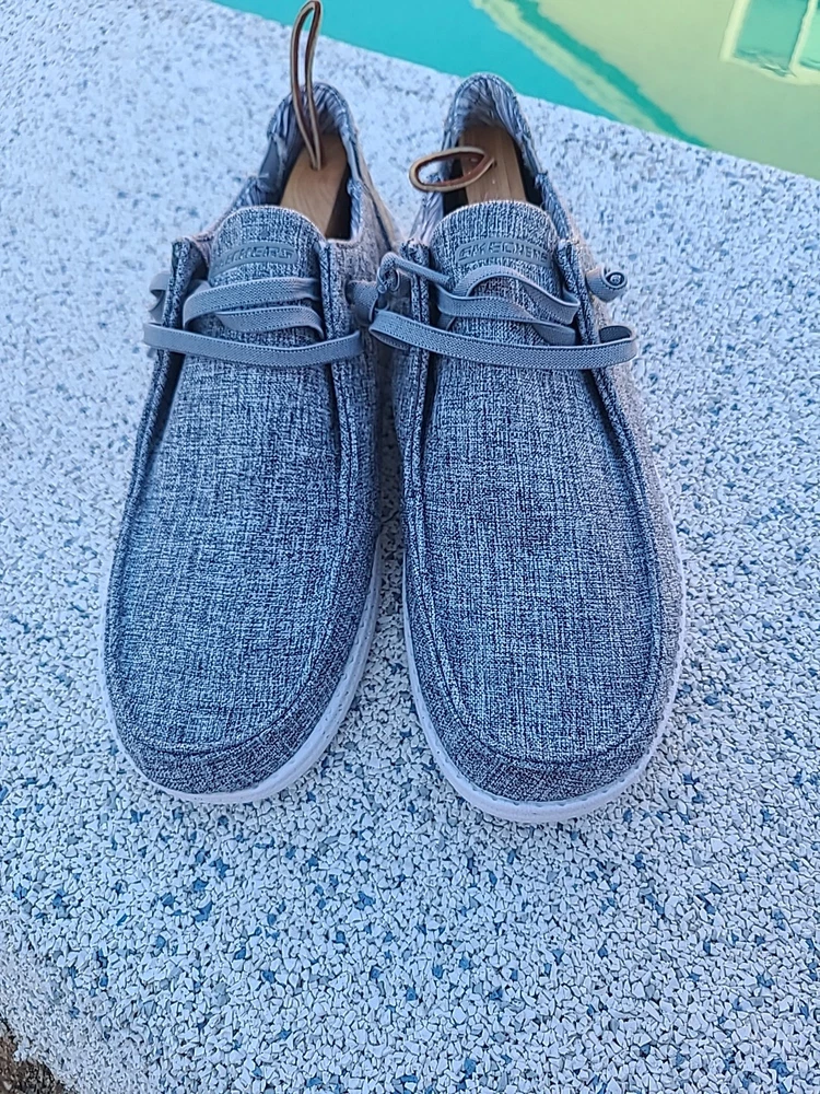 The Skechers Men's Relaxed Fit Melson Chad Slip-On Shoes are casual sneakers in a solid heathered gray color, featuring a slip-on closure for easy wear. They are designed with a Memory Foam insole for added comfort and a canvas upper material with fabric lining. These size 11.5 shoes from the Skechers Relaxed Fit product line offer a relaxed fit and are perfect for everyday casual wear. Excellent pre-owned condition. Cleaned & Inspected. Stored in AC pet smoke free facility. Packed and ready to ship. Thanks for shopping by. Offers & Questions are welcome.