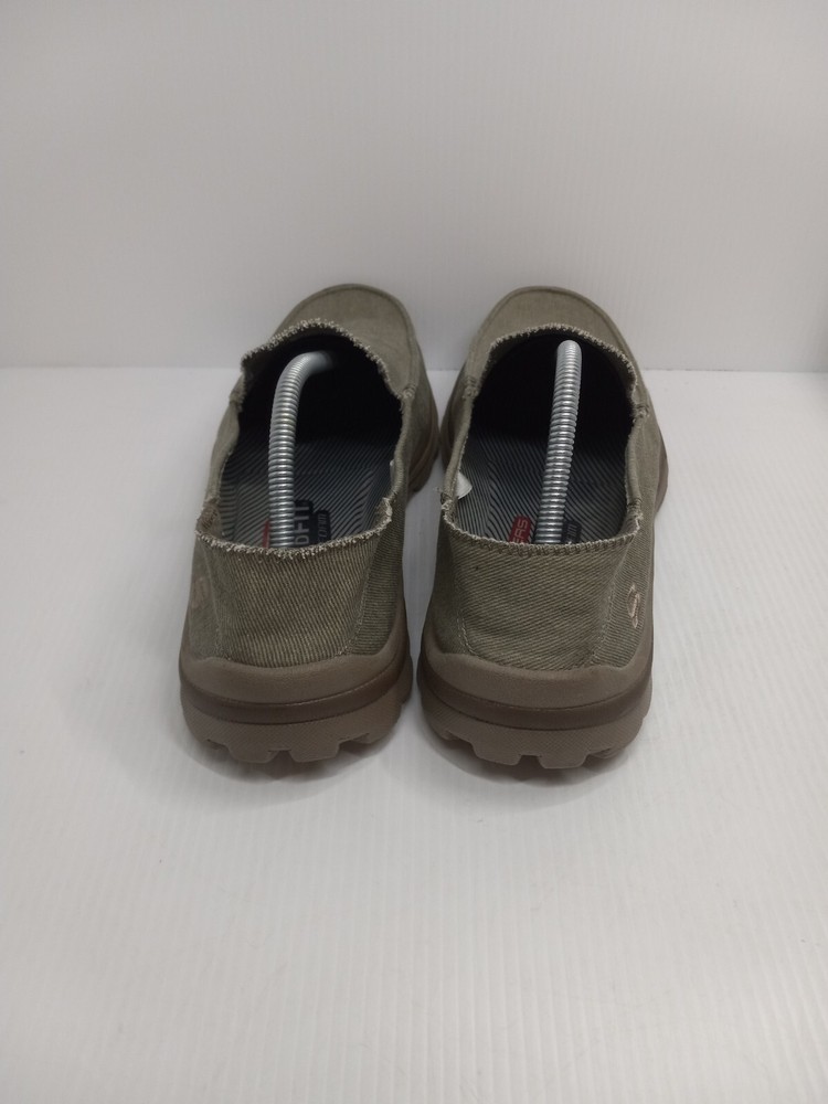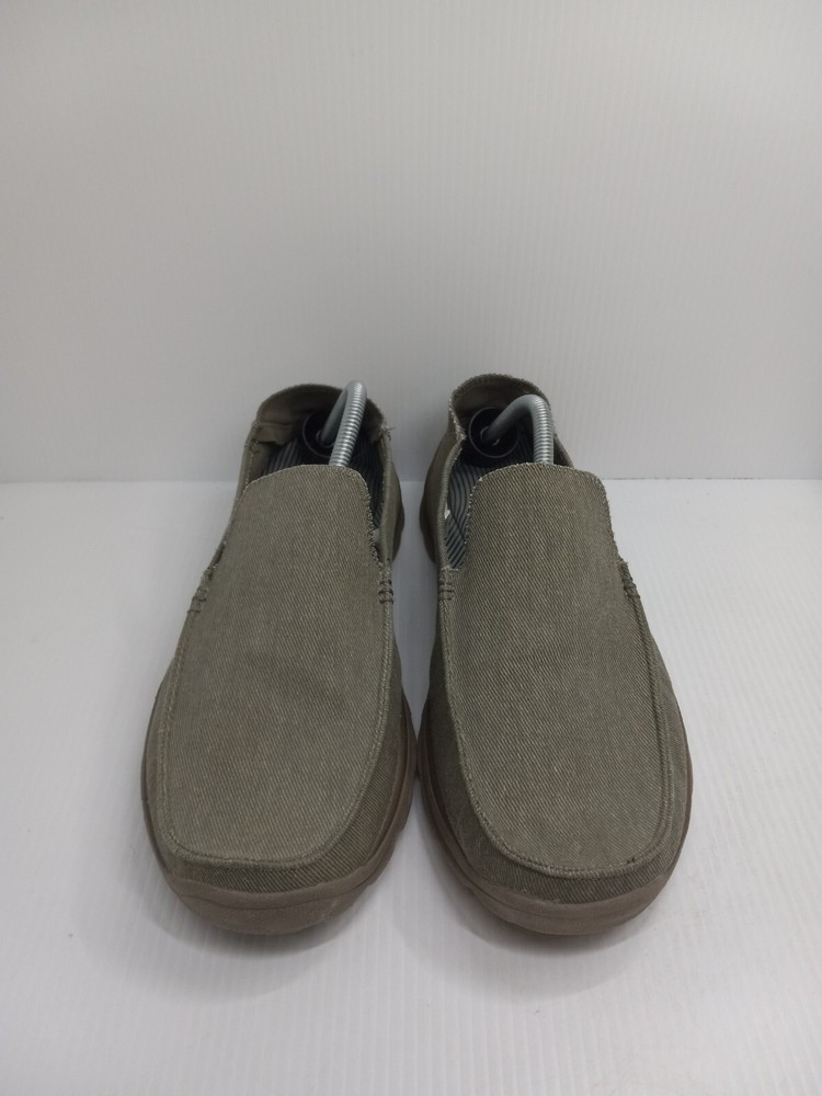 Skechers Mens 12 Superior Olive Canvas Relaxed Fit Loafers 64368.in excellent condition no snags holes or tears