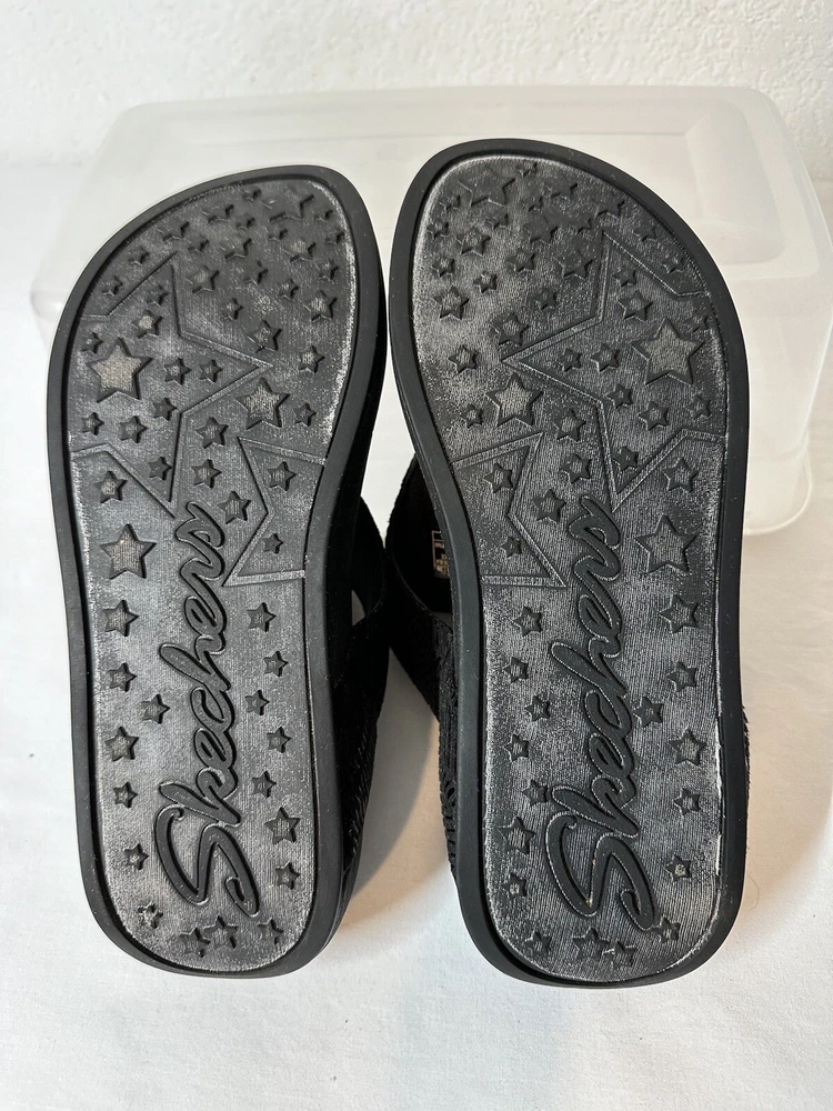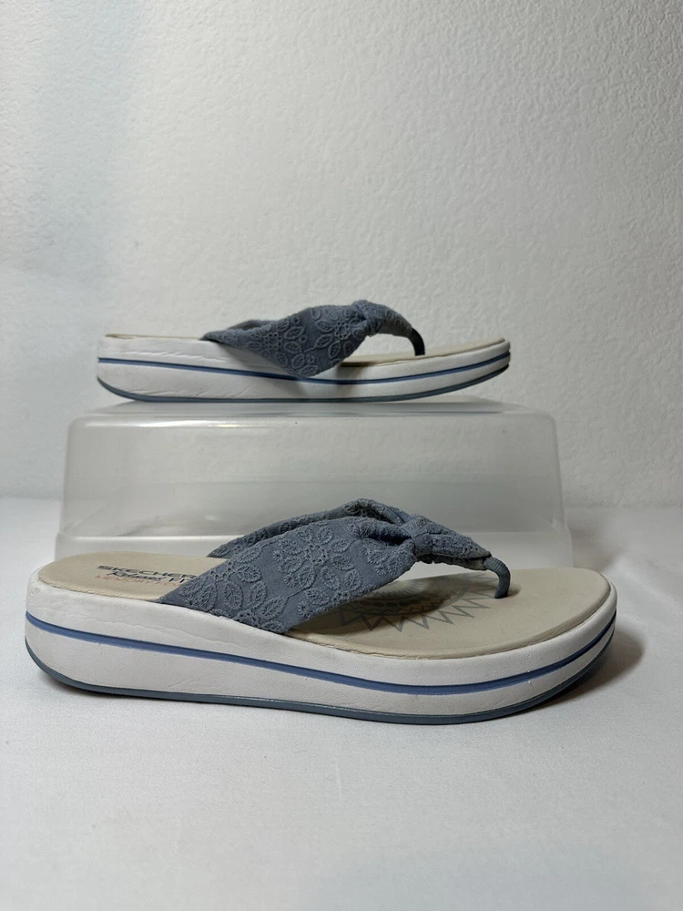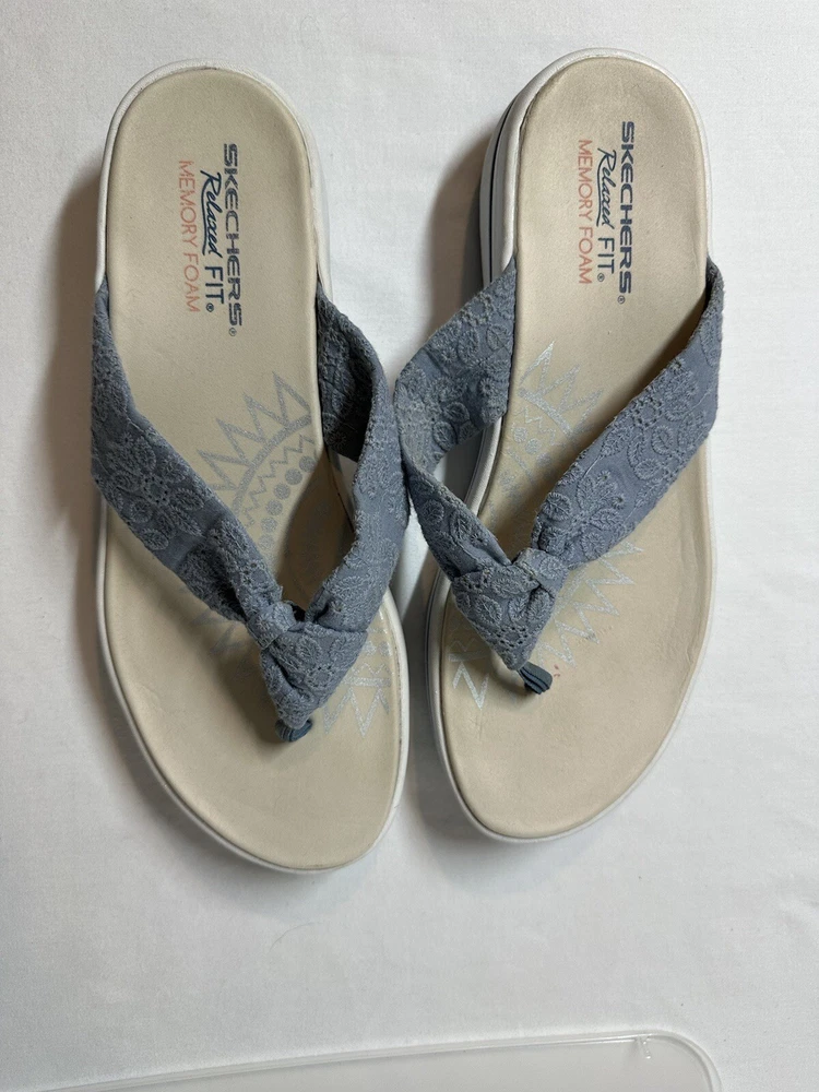 Skechers Relaxed Fit Memory Foam Womens Blue Embroidered Straps Sandals Size 9 Very Good Gently Used
