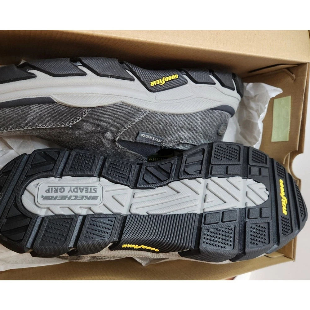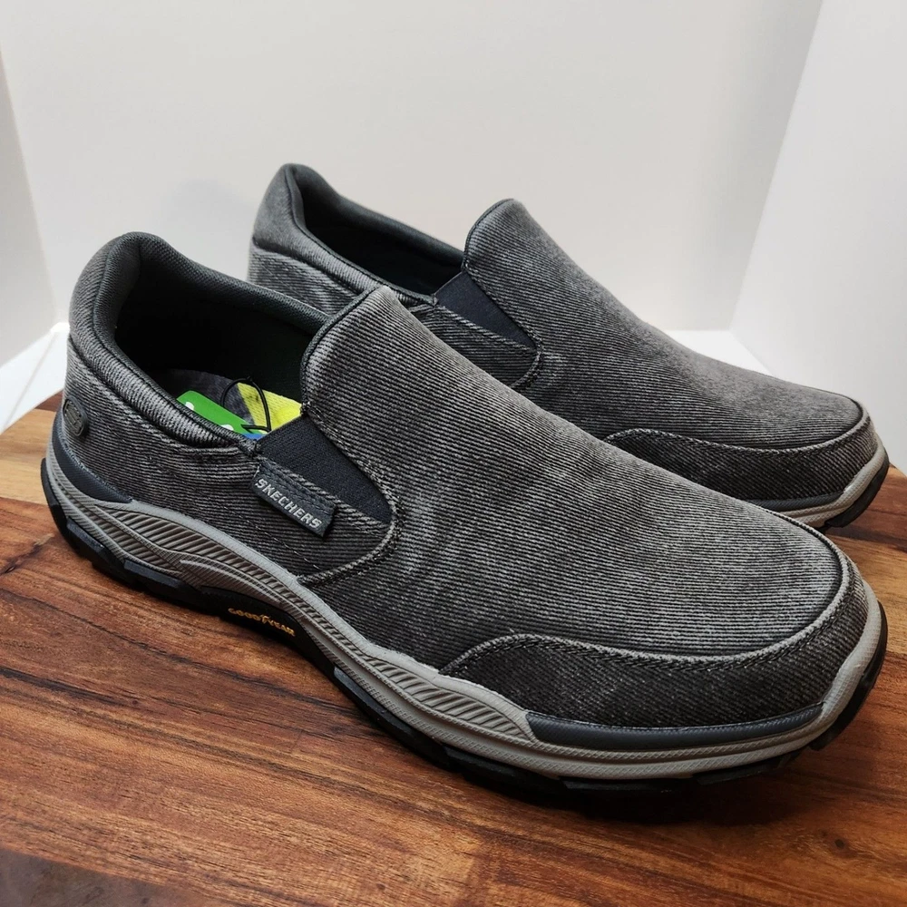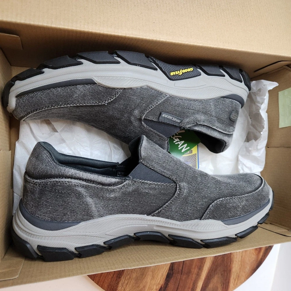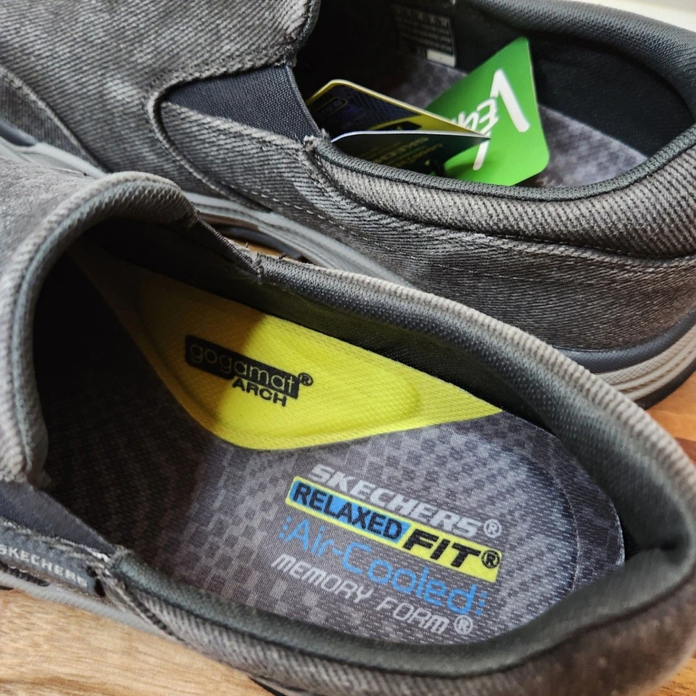 men's US size 12 Euro 46 Skechers relaxed fit Respected Fallston memory foam clean soles, with box please go by my typed description and photos - not auto fill for the most accurate descriptions - message me with any questions